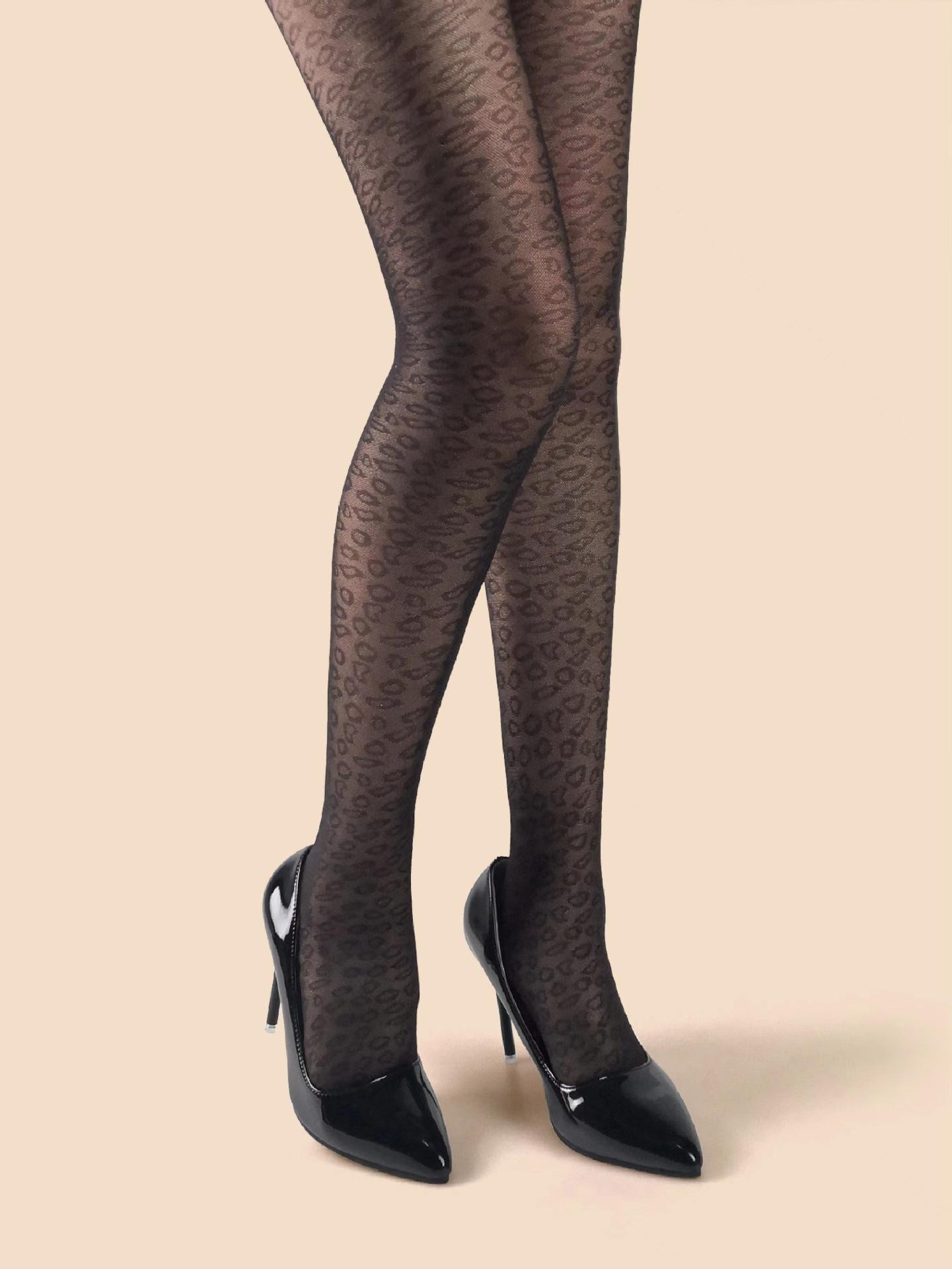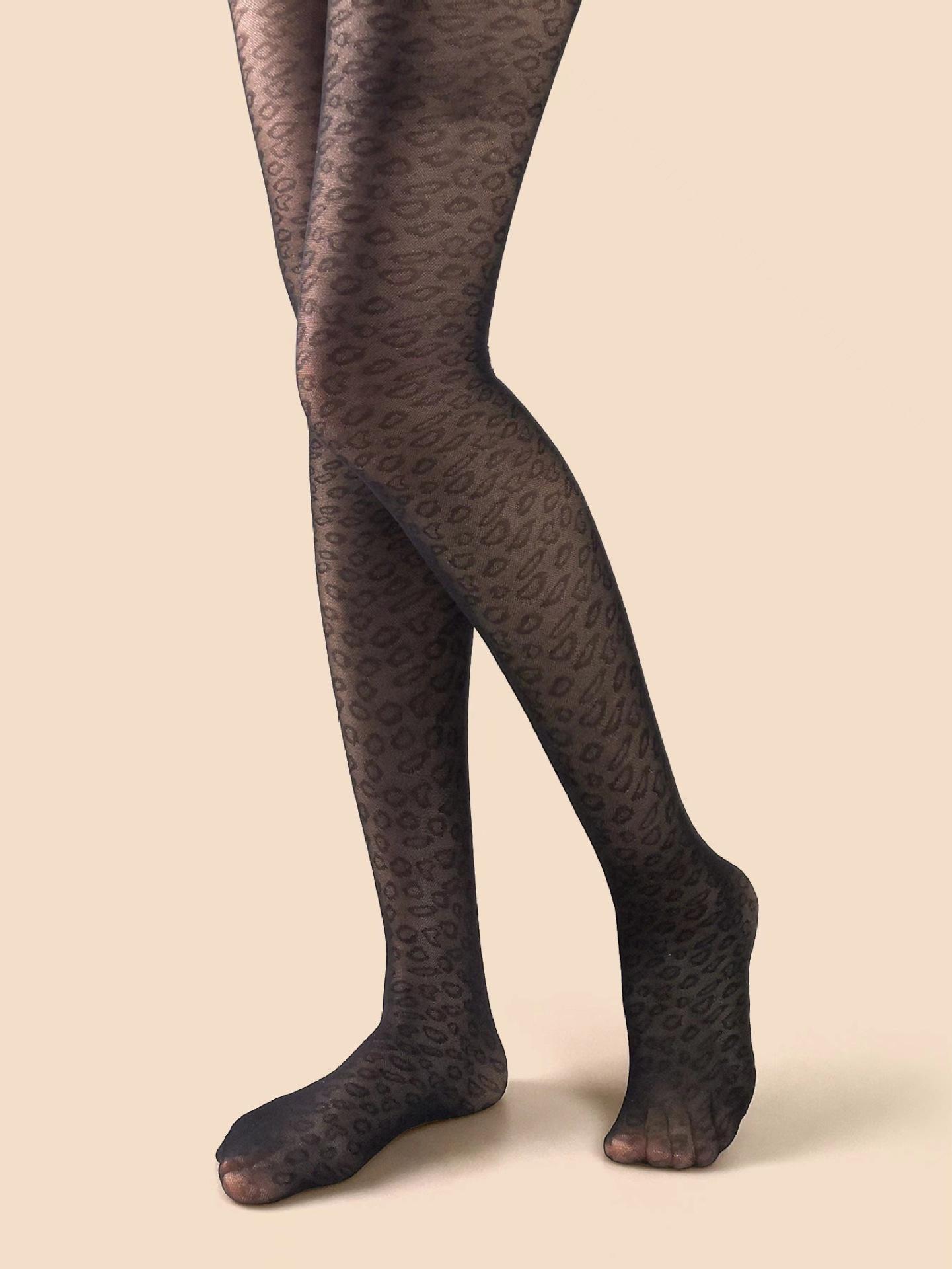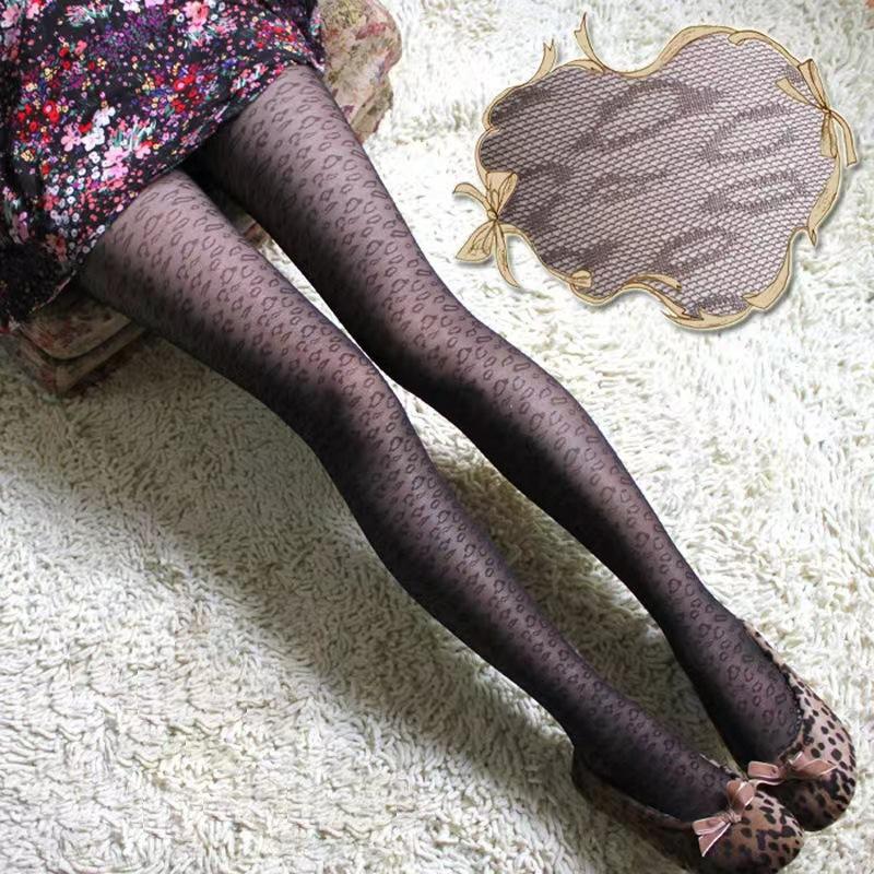 Medias jacquard de leopardo retro japonés, pantimedias de seda negra sexy adelgazantes para la parte inferior, calcetines anti-ganchos para las piernas, ventas directas de fábrica