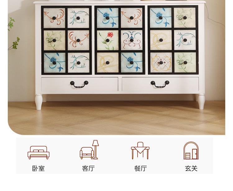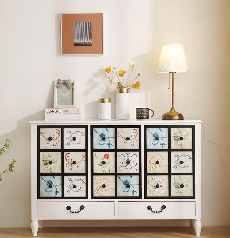 Gabinete de cubo estilo americano, gabinete de almacenamiento con cajones de madera maciza, gabinete de almacenamiento de pared pintada para dormitorio, gabinete de almacenamiento vintage para sala de estar del hogar