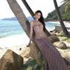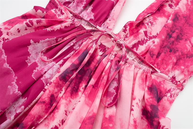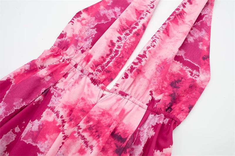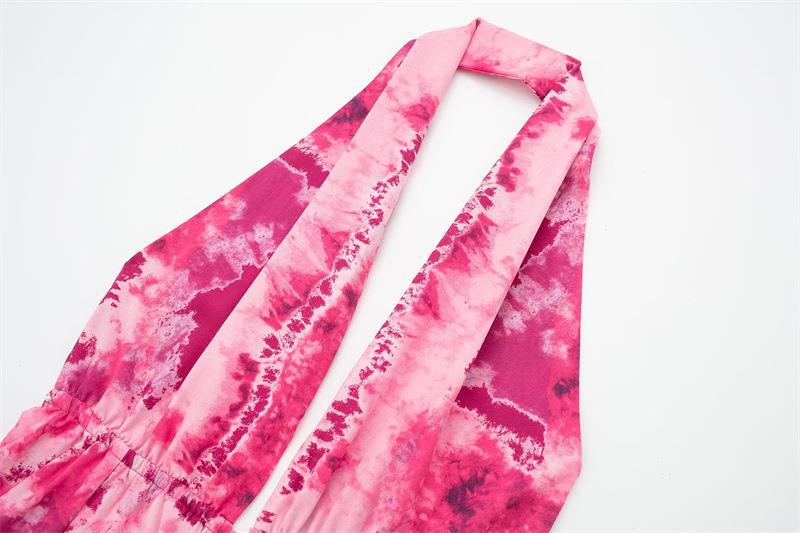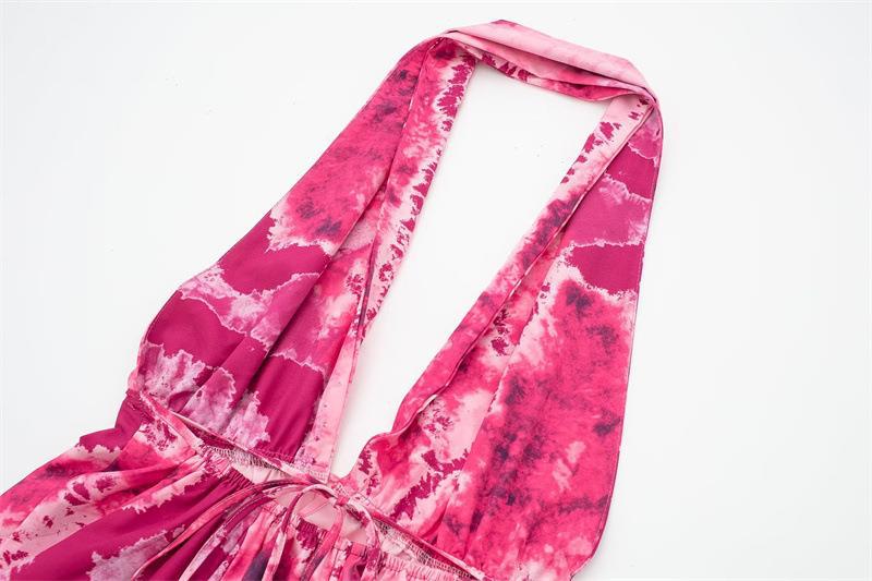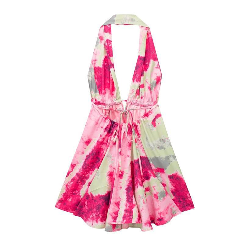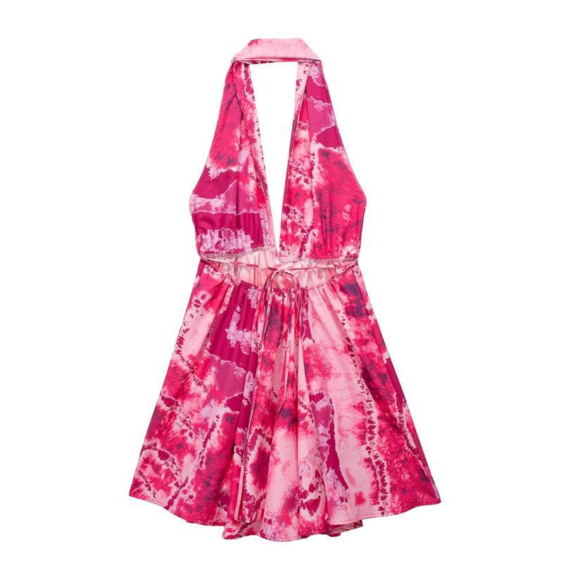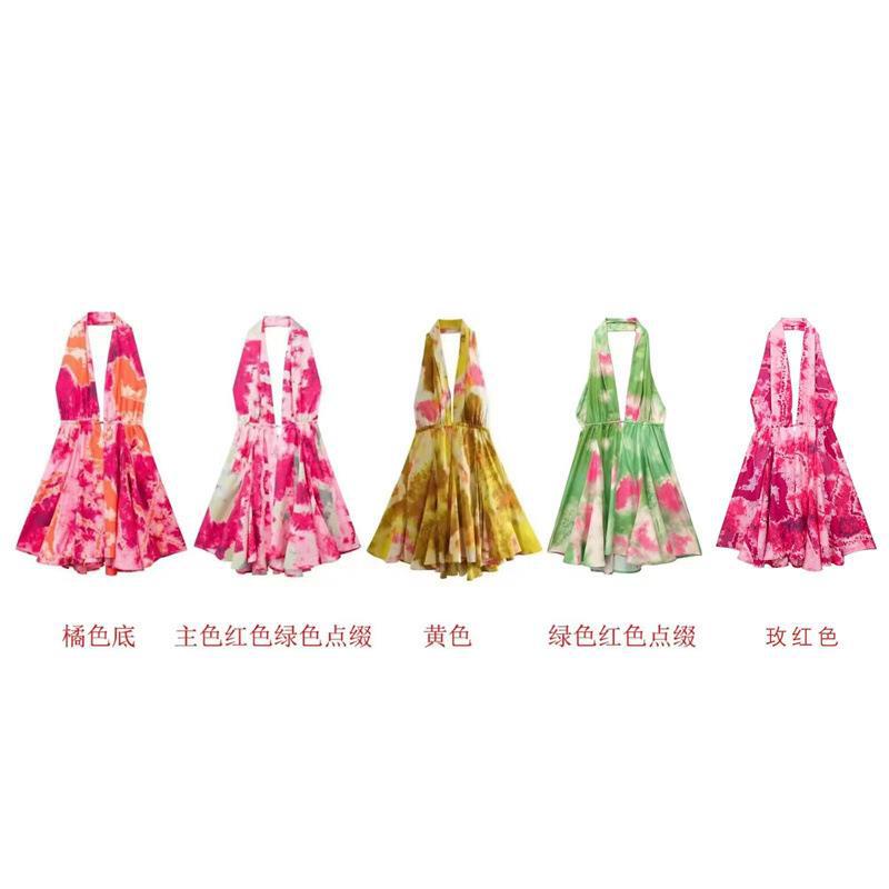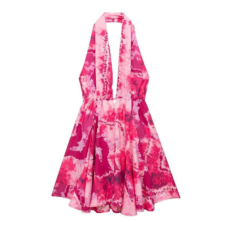 Vestido estampado estilo puro de verano, sexy, con cuello halter y espalda descubierta, falda de corte A, temperamento nicho francés, falda ajustada a la cintura para mujer