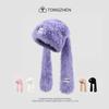 Bonita bufanda con orejas de zorro y forro polar integrado para mujer, gorro de lana gruesa, protección contra el frío en invierno, conjunto de dos piezas para ciclismo.
