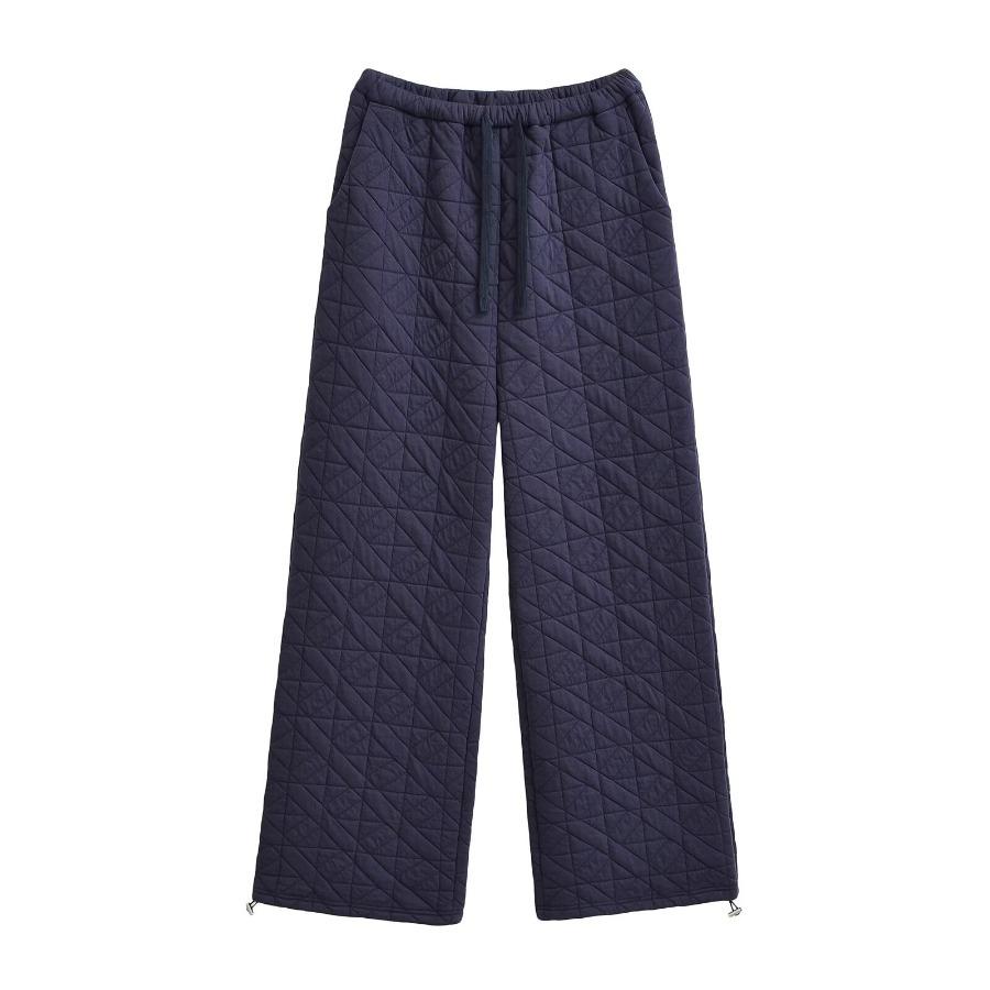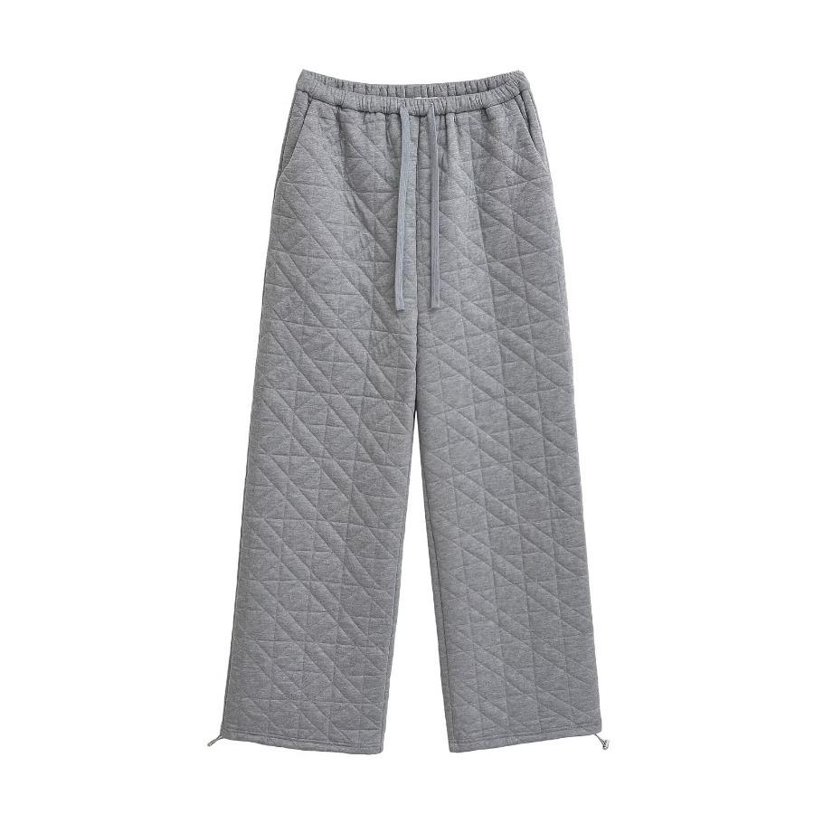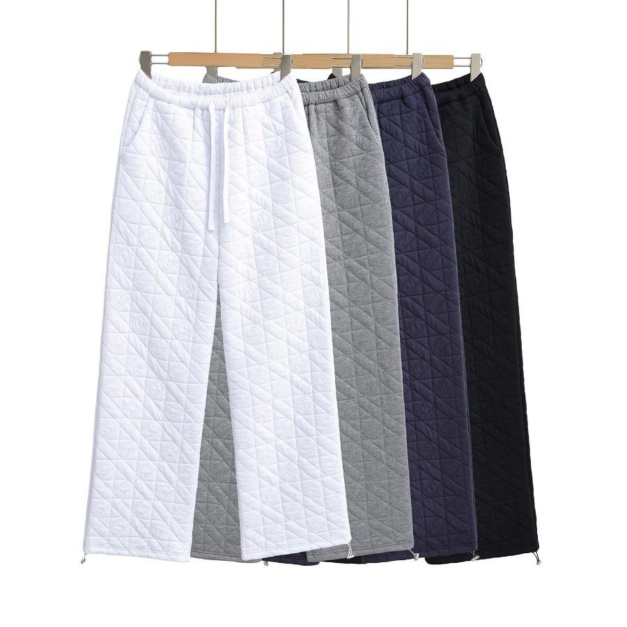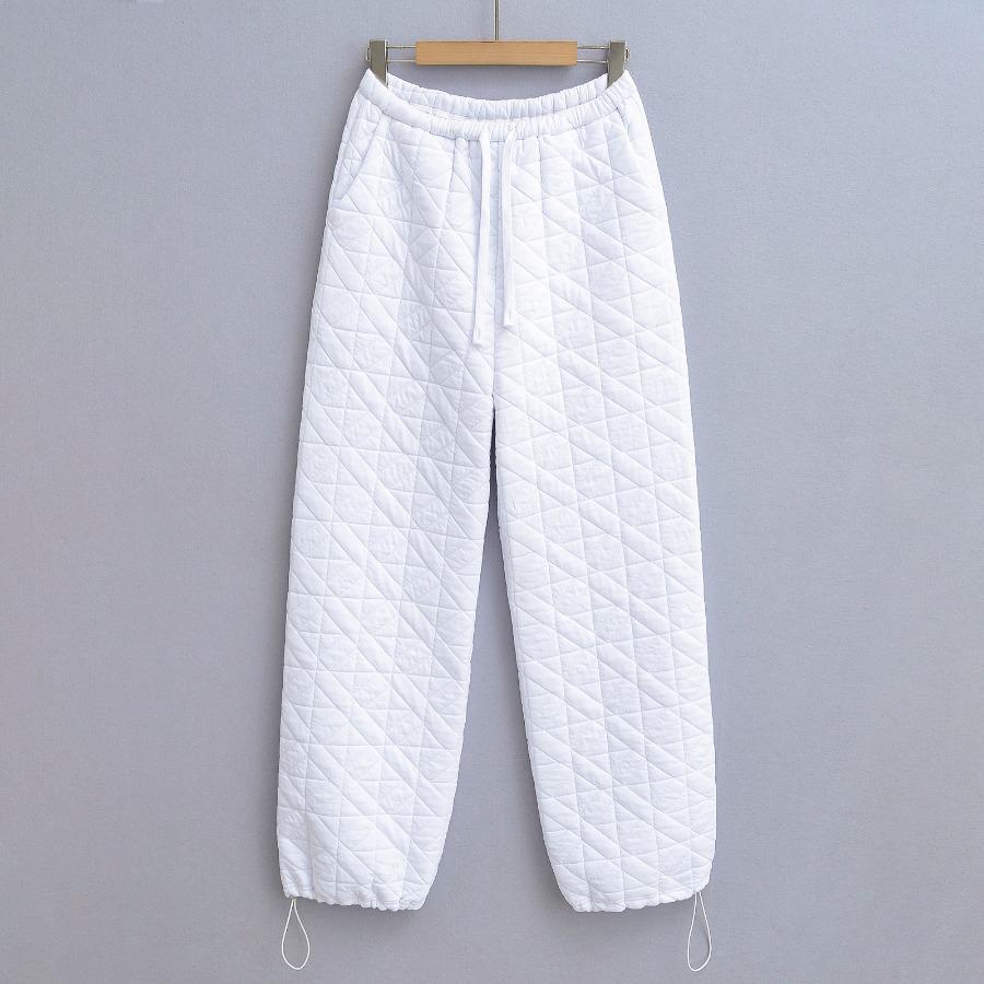 Pantalones casuales de algodón acolchados con rombos, estilo americano, gruesos, holgados y cálidos, de pierna ancha, estilo europeo y americano, primavera de 2024