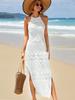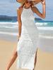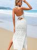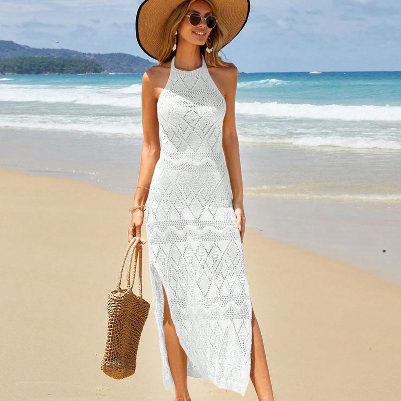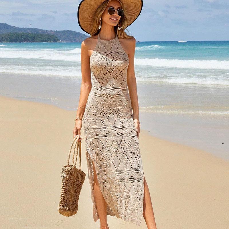 Nuevo Transfronterizo Amazon Tejido Calado Protector Solar Playa Cubre Traje de Baño Halter Espalda Descubierta Abertura Bikini Traje de Baño Vestido Largo