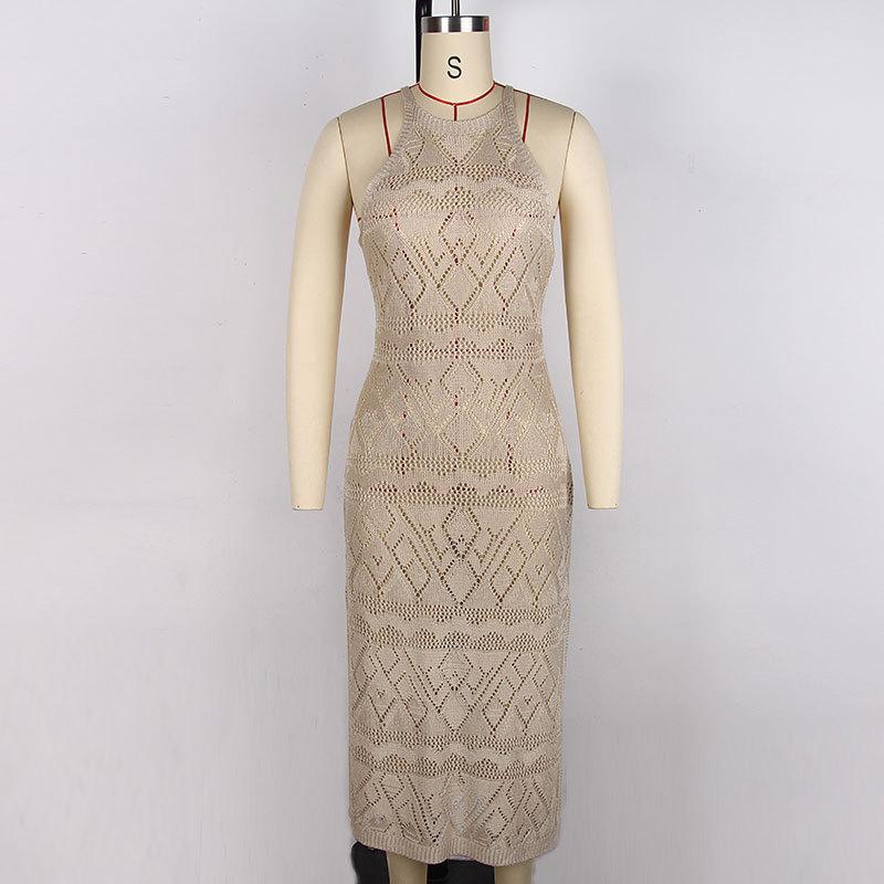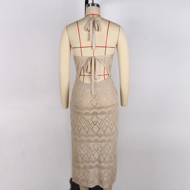 Yangyang Europeo y Americano Transfronterizo Largo Calado Tejido Halter Sling Sexy Espalda Descubierta Abertura Vestido Cubreplaya Mujer