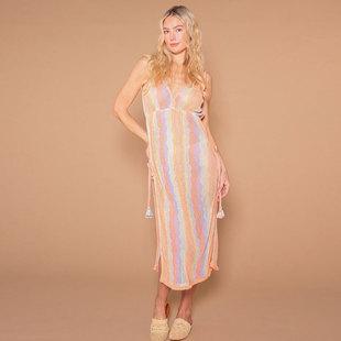 Yangyang transfronterizo Europeo y Americano blusa de playa falda larga tejido calado red de pesca sexy raya de color vestido de protección solar de playa femenino