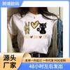 Camiseta de manga corta para mujer primavera 2023 con estampado de dibujos animados de la serie "paz y amor" pintada a mano, manga corta y cuello redondo.