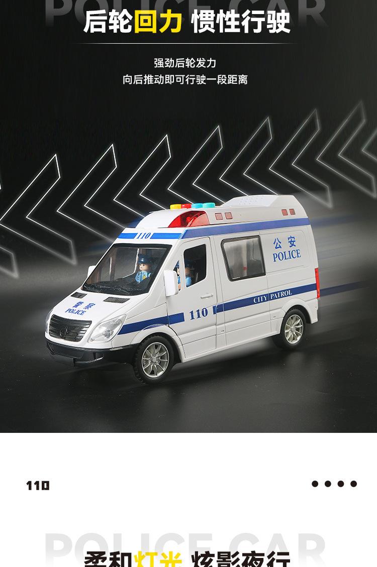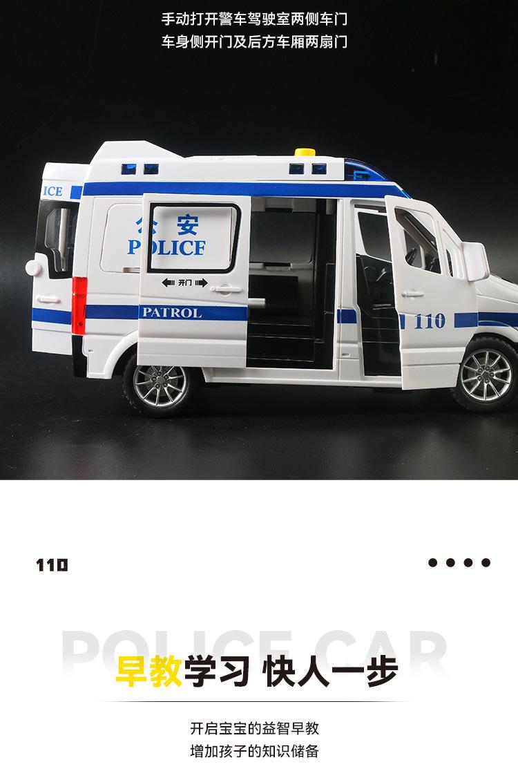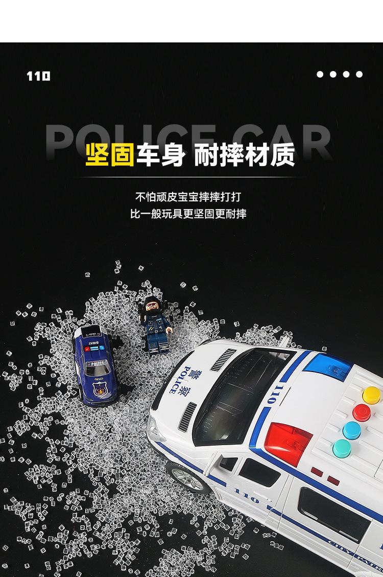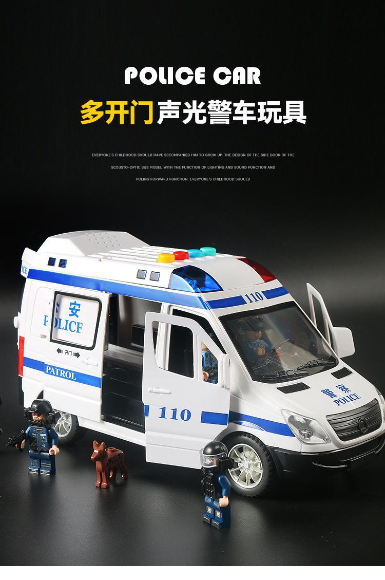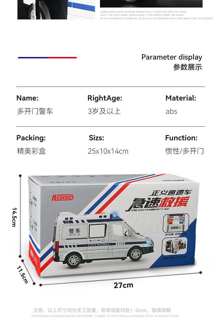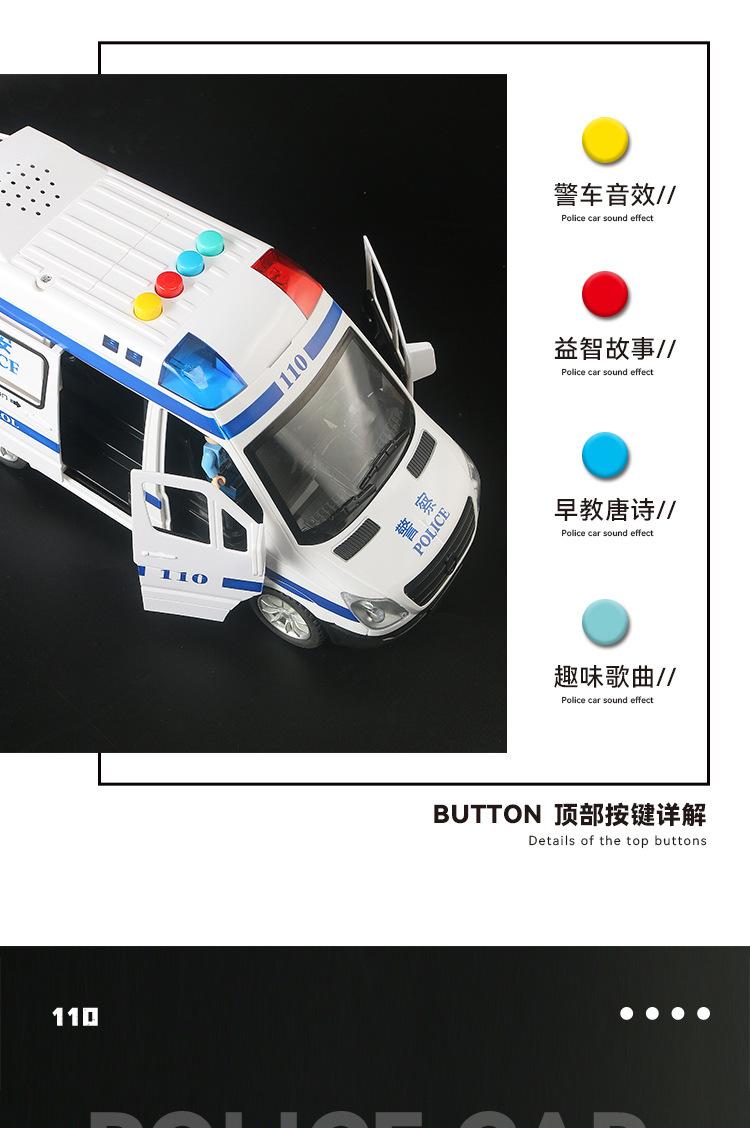 Modelo de simulación de coche de policía 110, luz inercial, música, puede abrir la puerta, juguetes para niños de 3 a 6 años