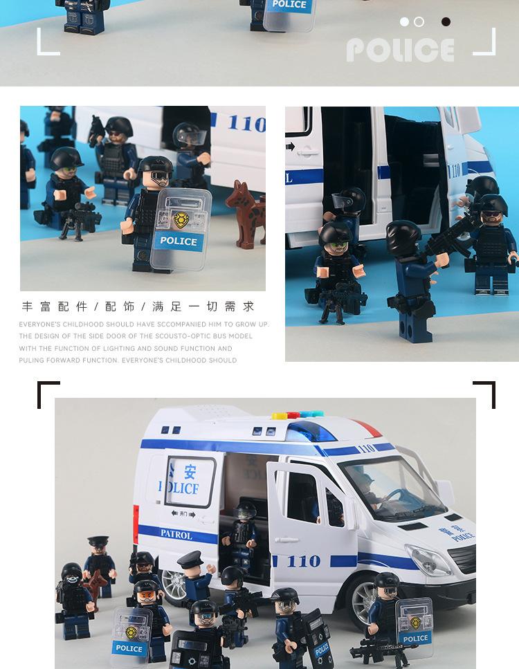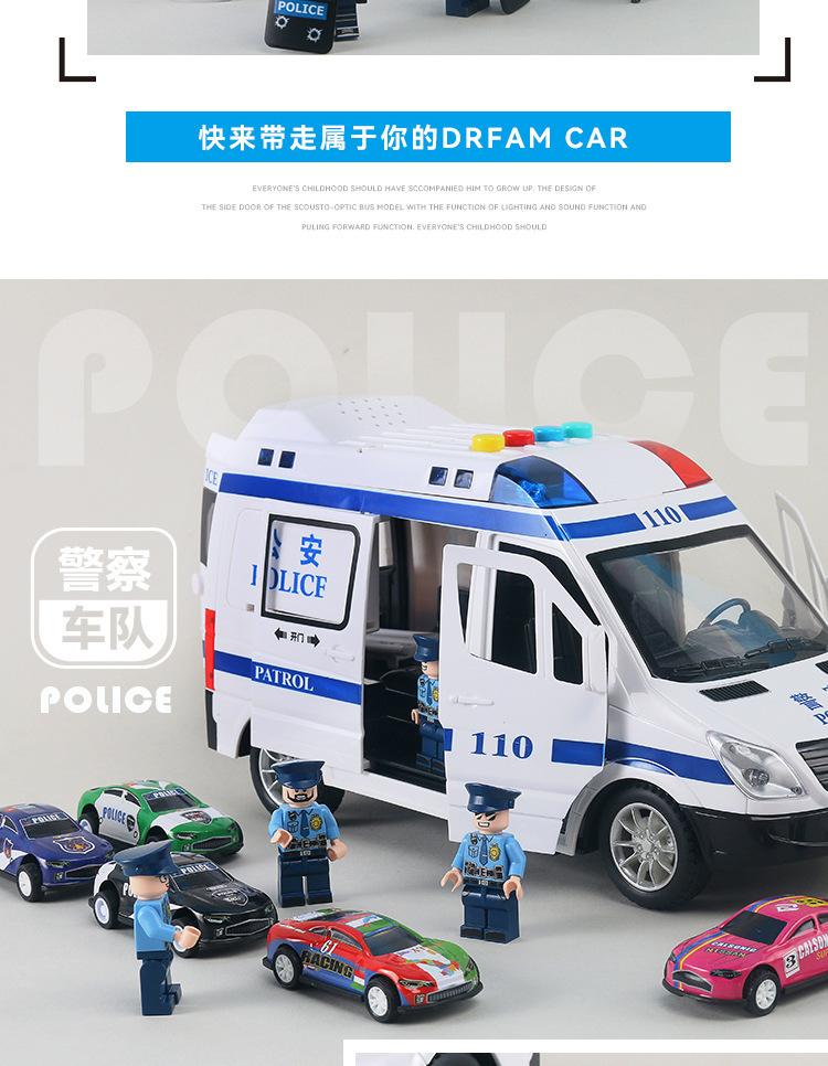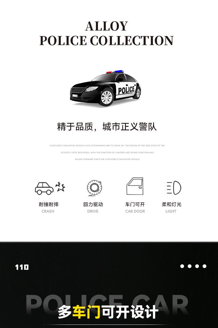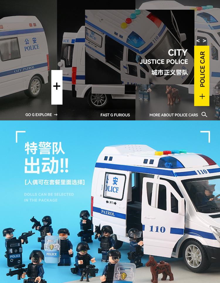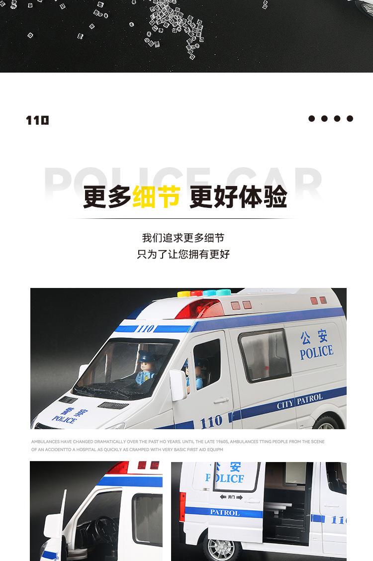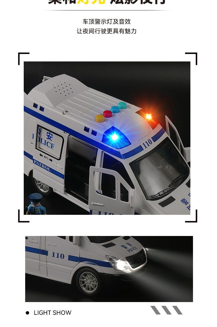 Modelo de simulación de coche de policía 110, luz inercial, música, puede abrir la puerta, juguetes para niños de 3 a 6 años