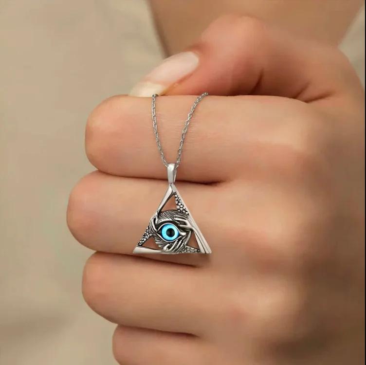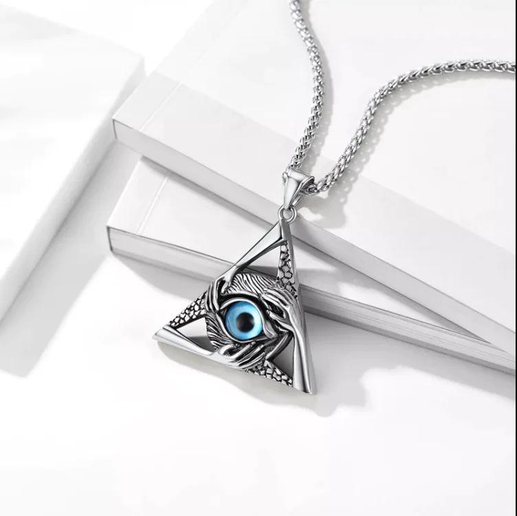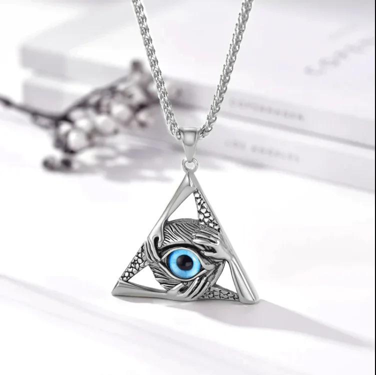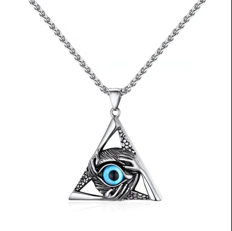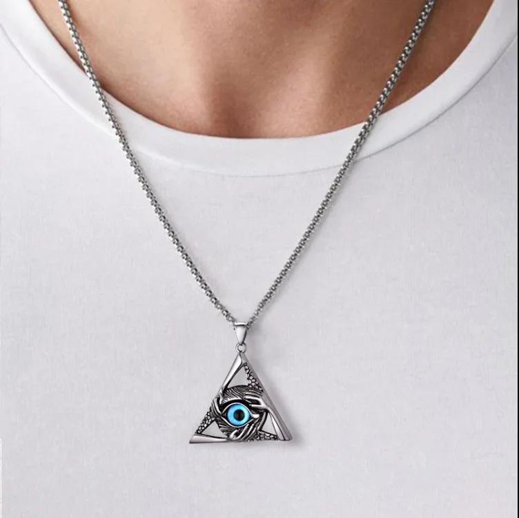 Colgante de Ojo del Diablo Popular de Moda Joyería Triangular Retro para Hombre y Mujer Colgante de Collar Hip-Hop Personalizado