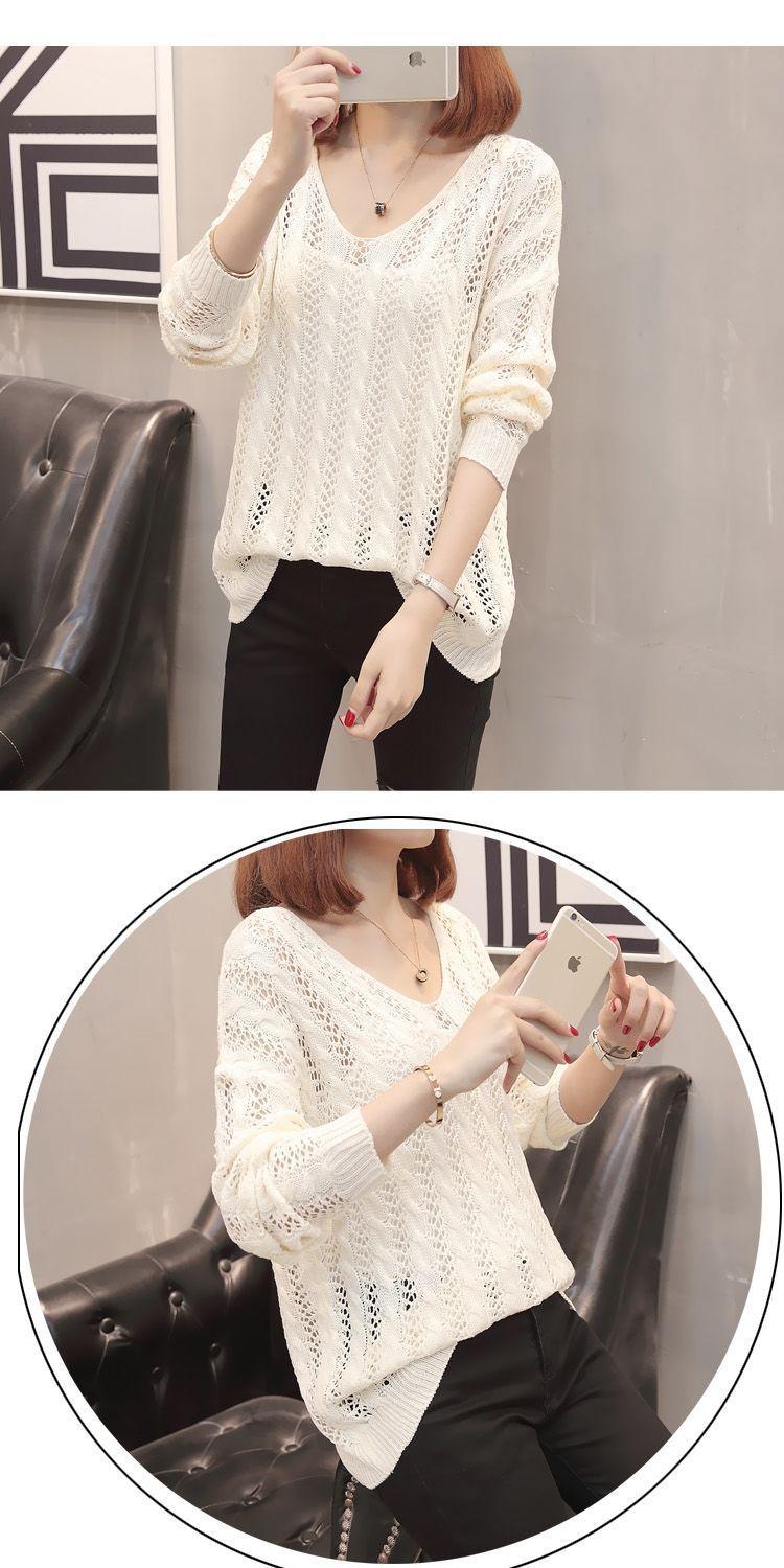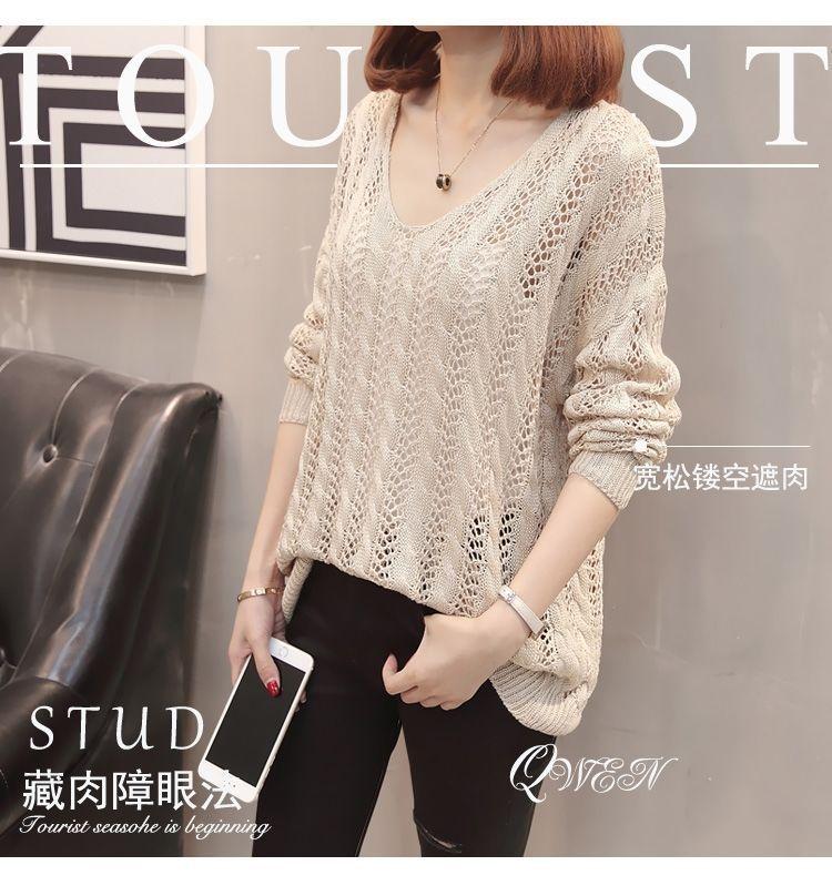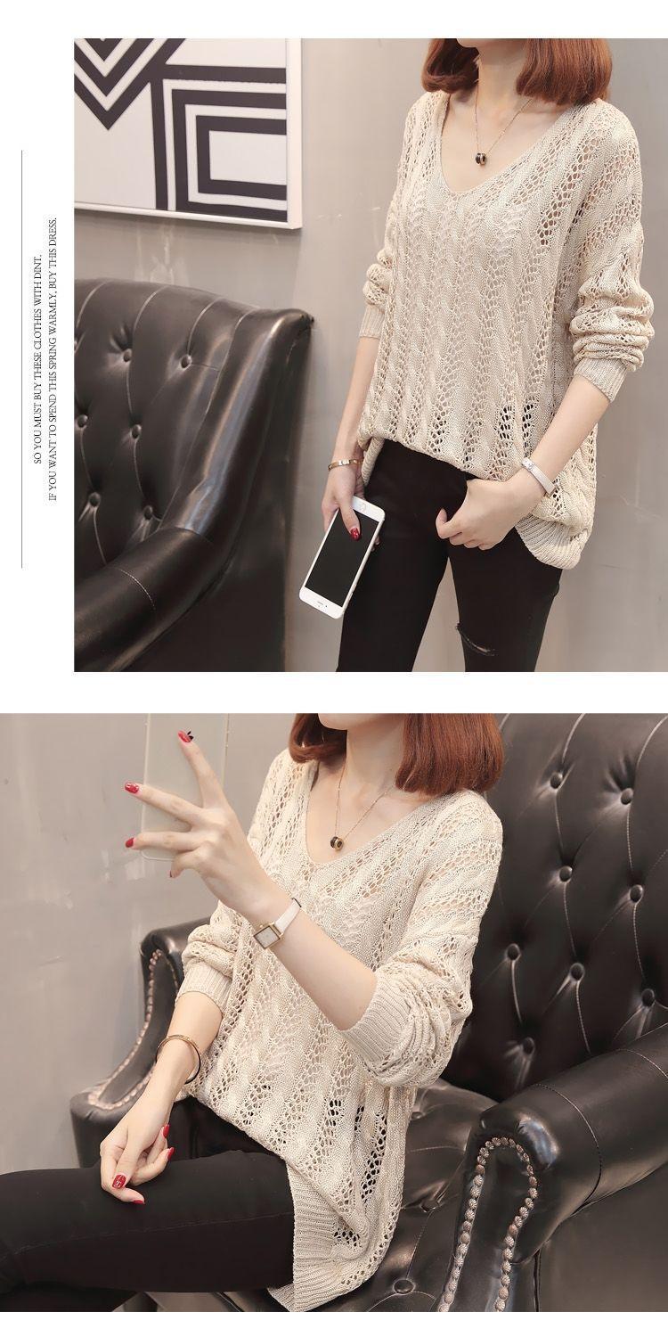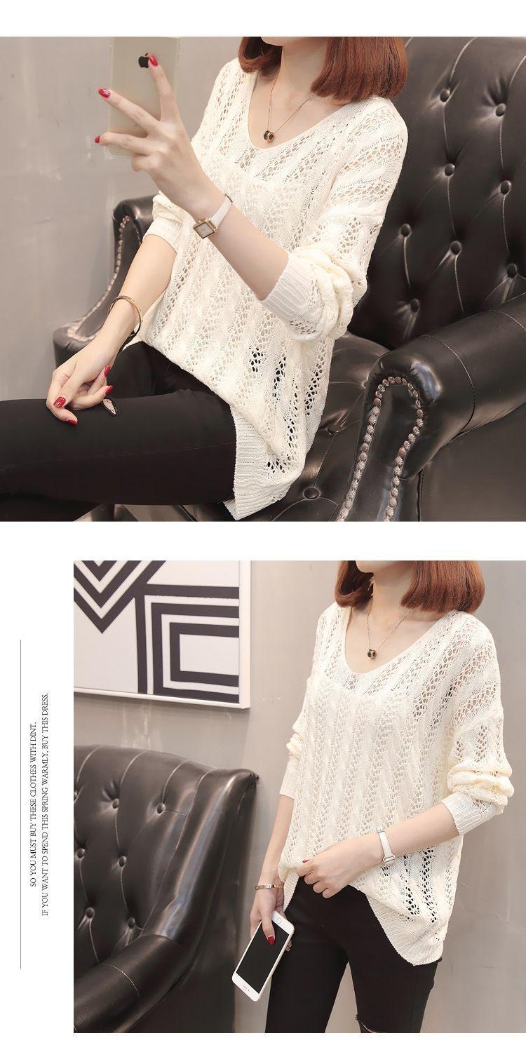 Tops de Primavera y Otoño 2025 Nuevo Suéter de Punto Calado para Mujer Suéter Holgado para Mujer Blusa Fina de Manga Larga para Mujer