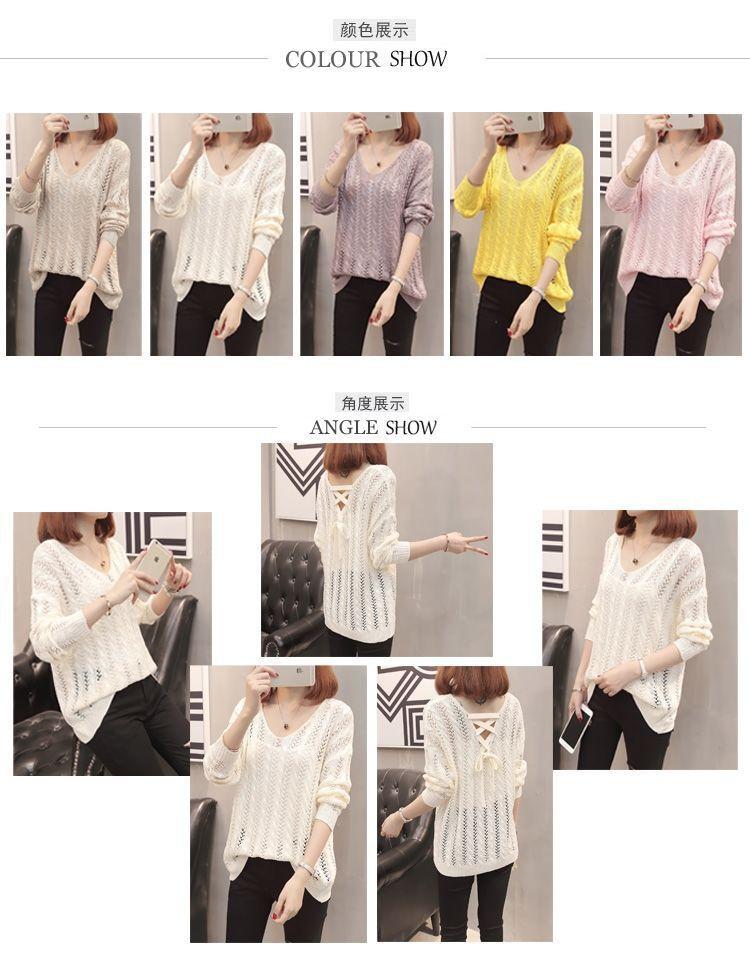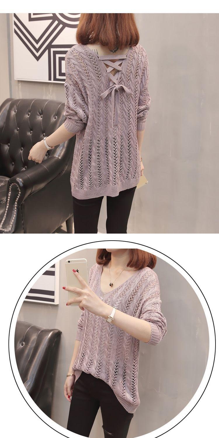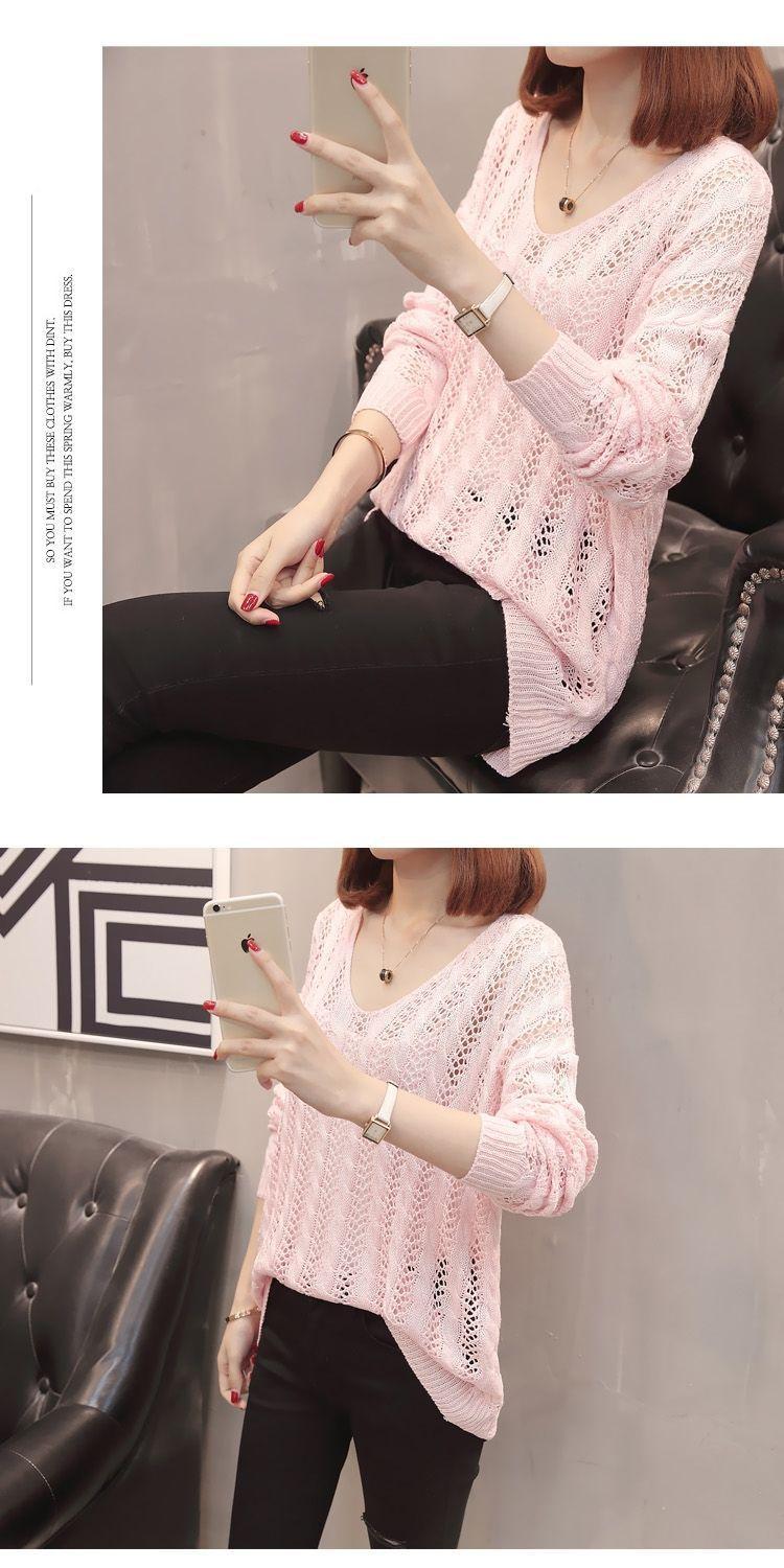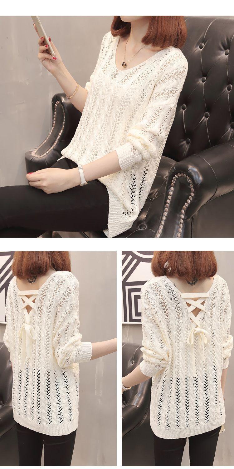 Tops de Primavera y Otoño 2025 Nuevo Suéter de Punto Calado para Mujer Suéter Holgado para Mujer Blusa Fina de Manga Larga para Mujer