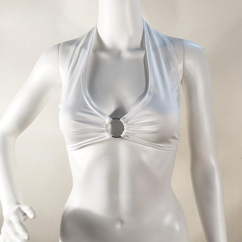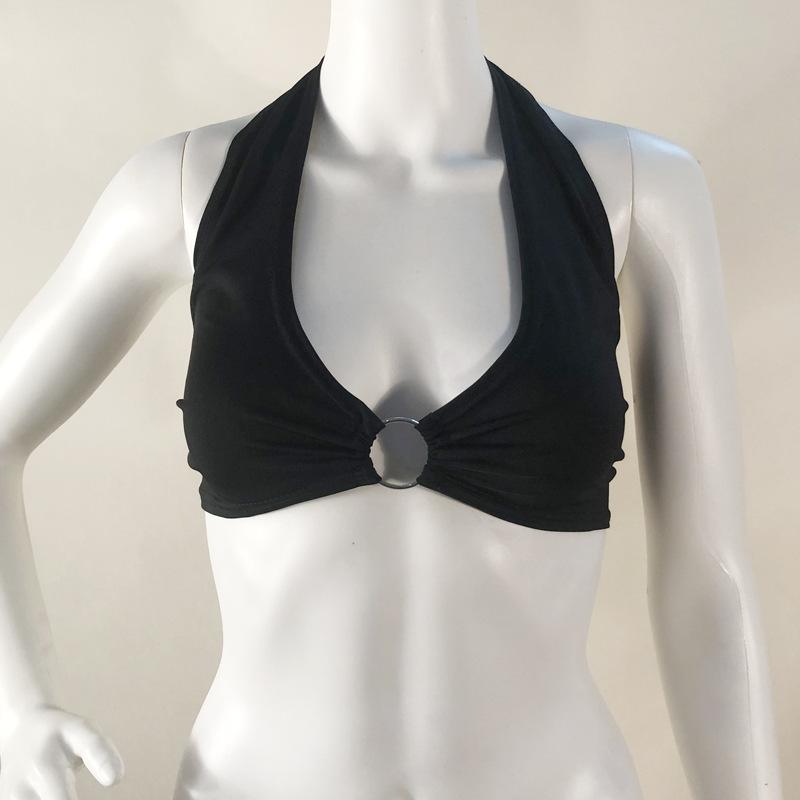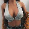 Chaleco pequeño de discoteca con cuello en V profundo y sexy para mujer, de primavera y verano de 2023, con anillo colgante y cordones, sin espalda y envuelto en el pecho, para discoteca