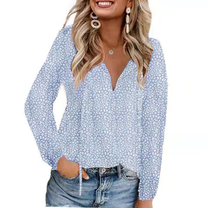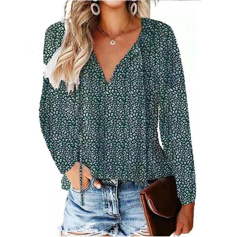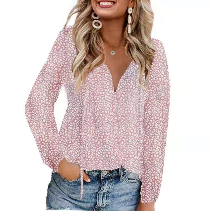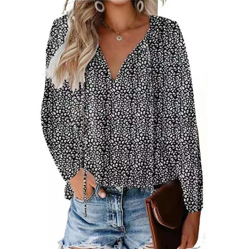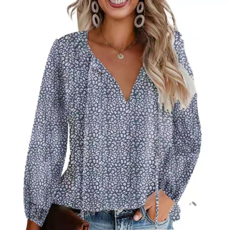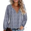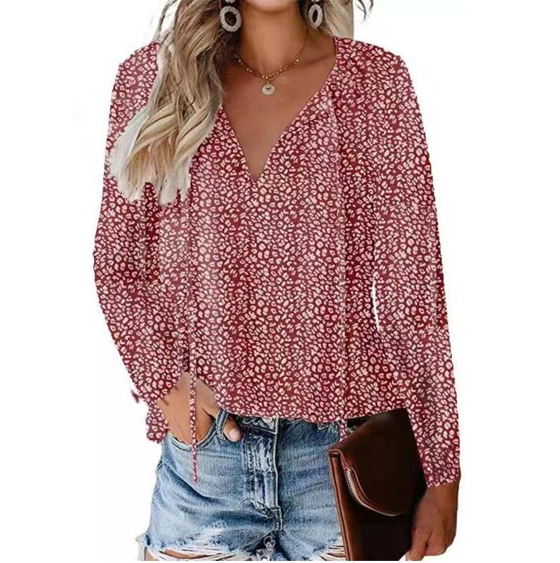 Camisa de gasa floral de verano para mujer, de 8 colores, de buena calidad, 2023, nueva, de comercio exterior, Amazon, con cuello en V y manga larga.