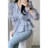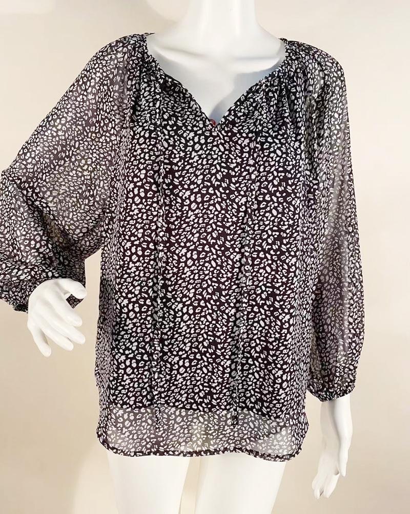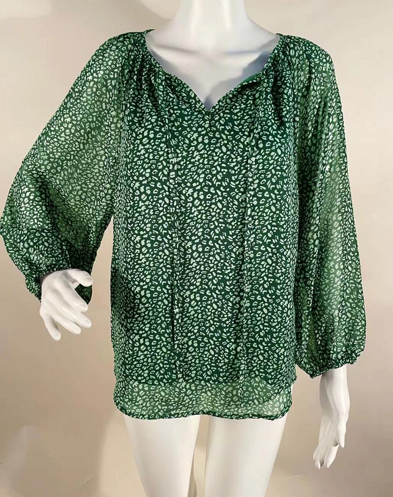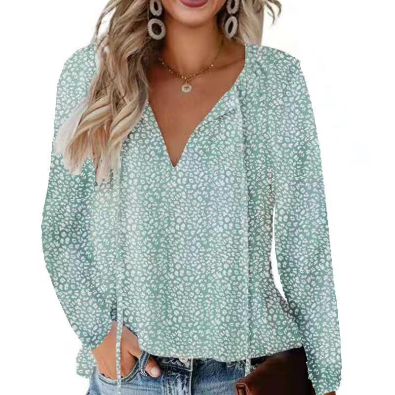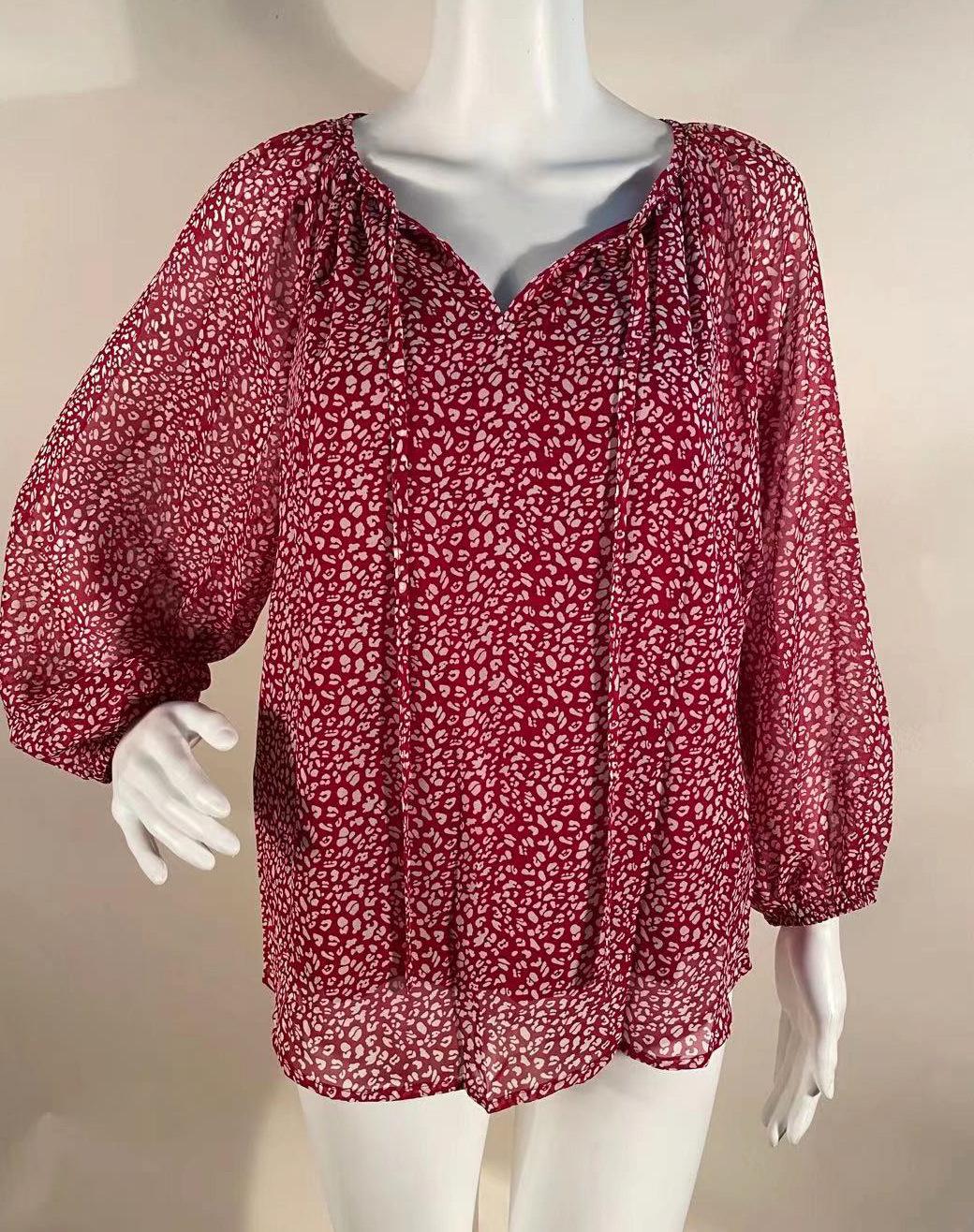 Camisa de gasa floral de verano para mujer, de 8 colores, de buena calidad, 2023, nueva, de comercio exterior, Amazon, con cuello en V y manga larga.