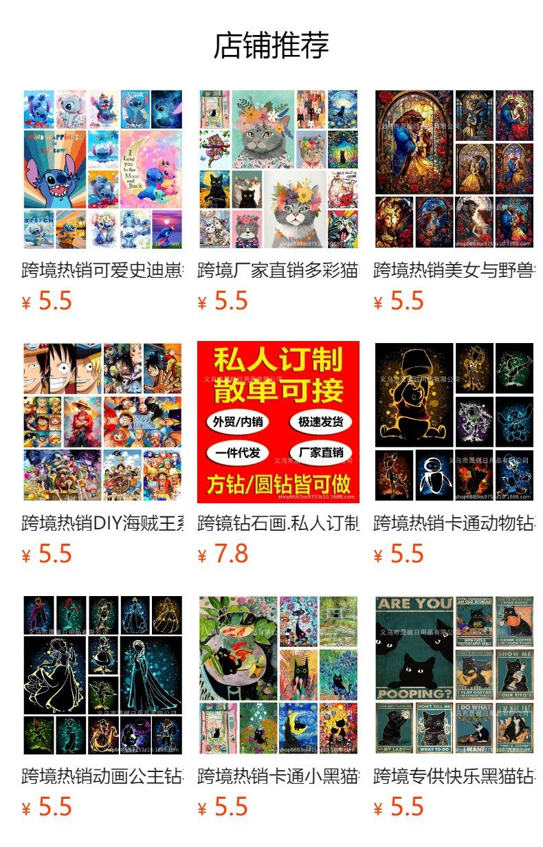 Pintura de diamante DIY, punto de dibujos animados de comercio exterior transfronterizo, pintura decorativa de diamante redondo, diamante completo, diamante cuadrado, sala de estar, dormitorio, venta al por mayor