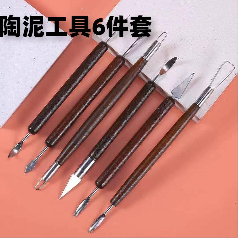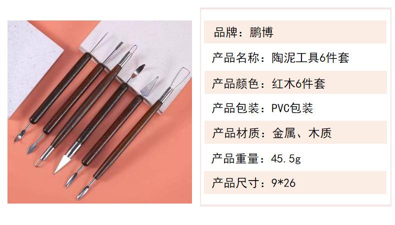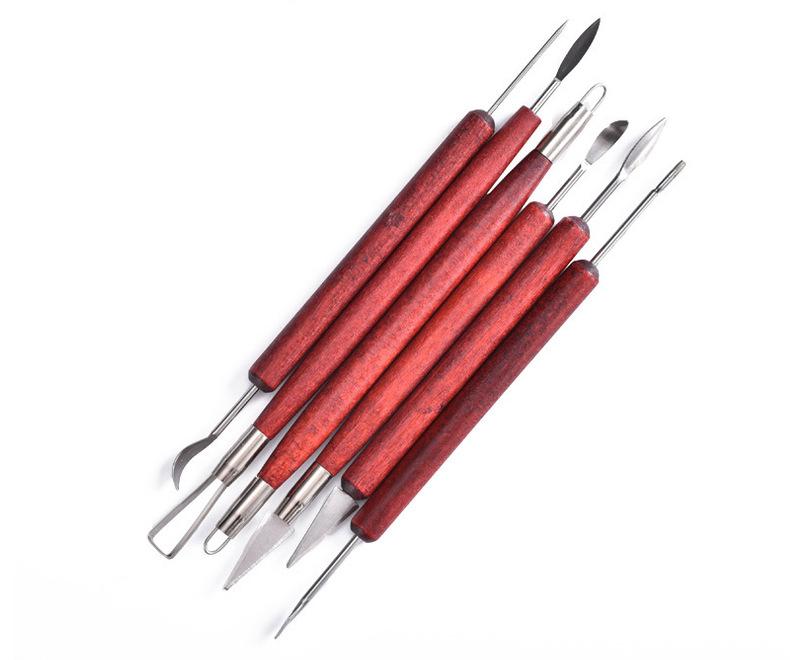 Herramientas de arcilla transfronterizas, 6 piezas, aptas para bricolaje, piedra, plástico, cuchillo de encaje de doble cabeza, cerámica, cuchillo para tallar arcilla de madera roja