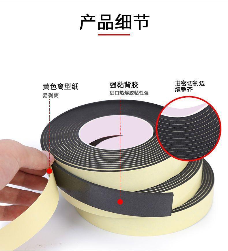 Cinta adhesiva de una sola cara de esponja EVA negra, almohadilla de goma a prueba de golpes, amortiguador de impactos, tira selladora de espuma anticolisión para puertas y ventanas con aislamiento acústico.