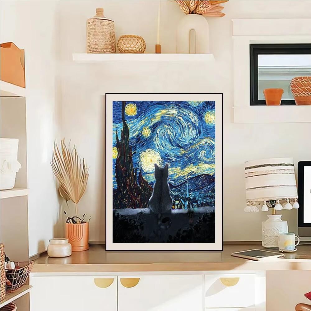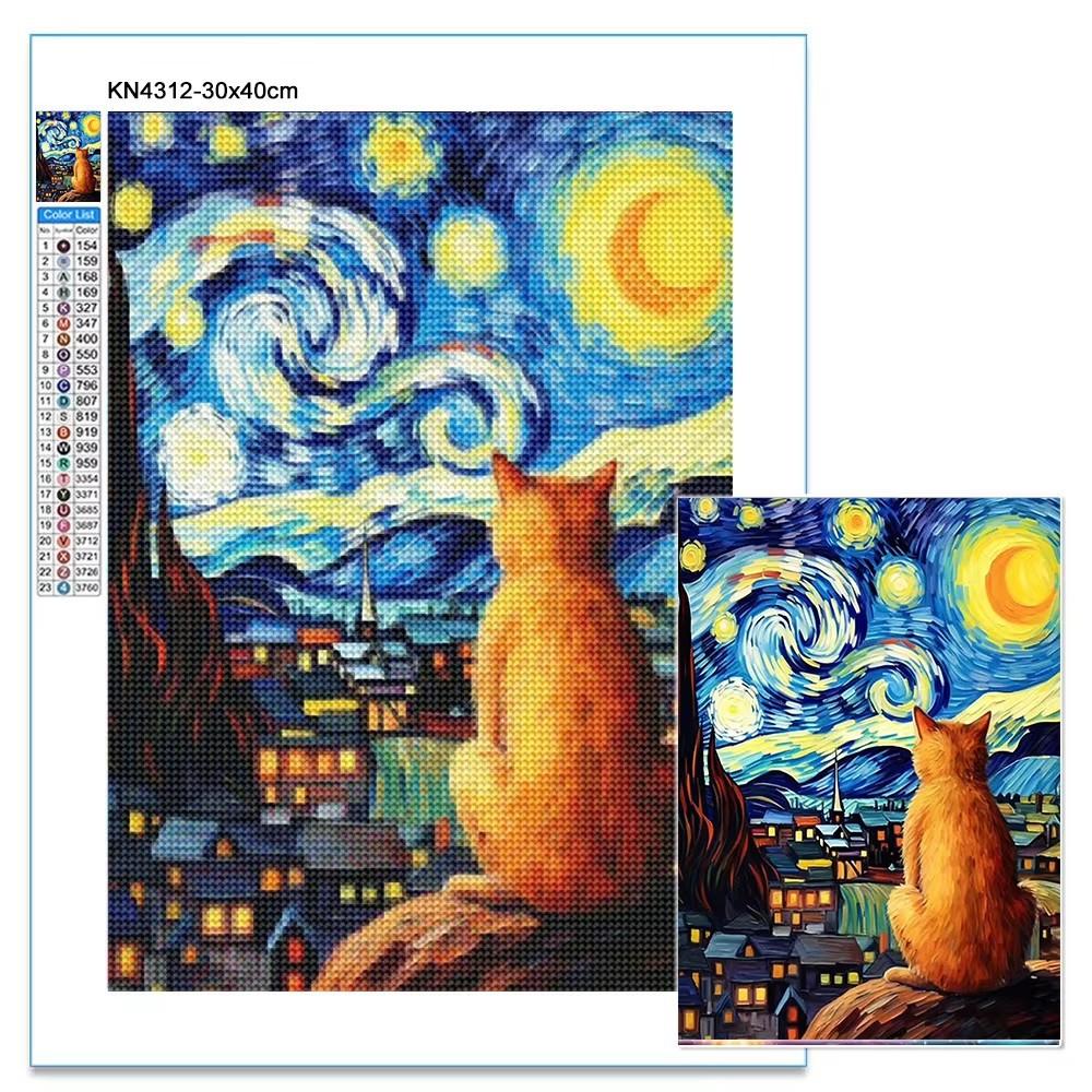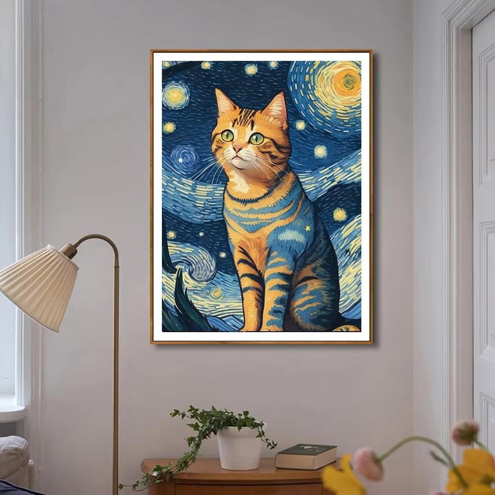 Pintura de diamantes de Amazon, diseño de estrella, gato, porche, decoración, venta al por mayor, 5D, redonda, bricolaje