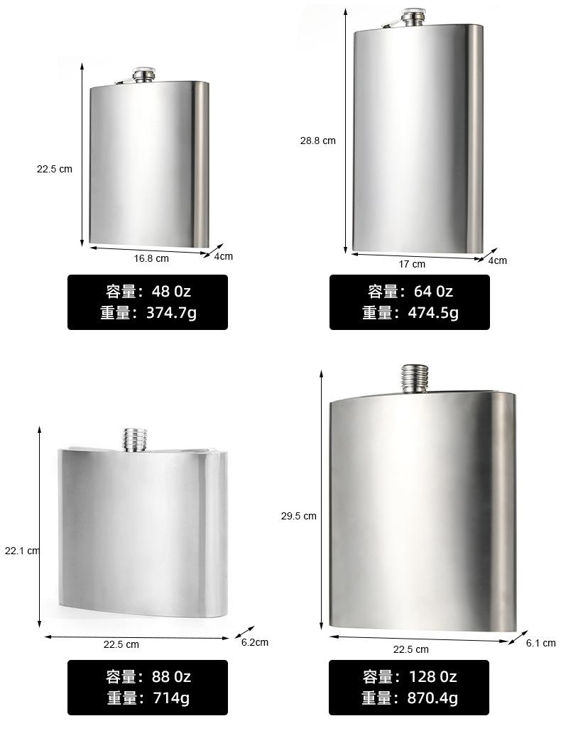 Olla para vino pequeña de acero inoxidable 304 gruesa, de alta gama, portátil, 201, para exteriores, portátil, plana, de 1 a 128 oz