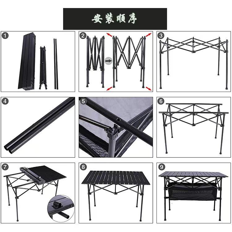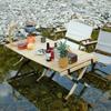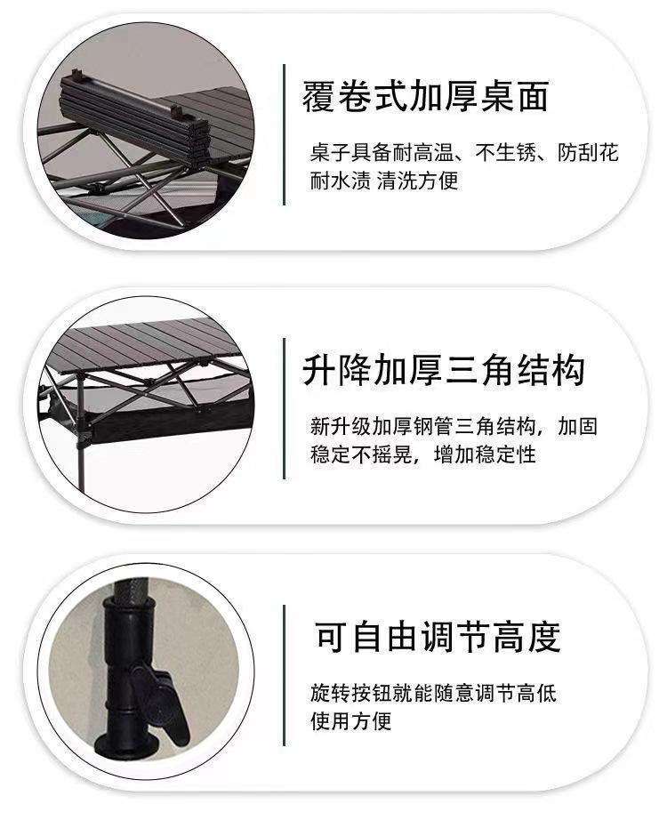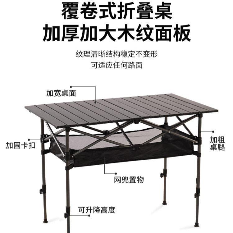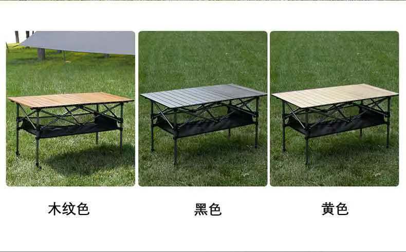 Mesa plegable para exteriores, mesa enrollable portátil para acampar, picnic, mesa de madera con veta, mesa plegable, mesa elevadora ajustable