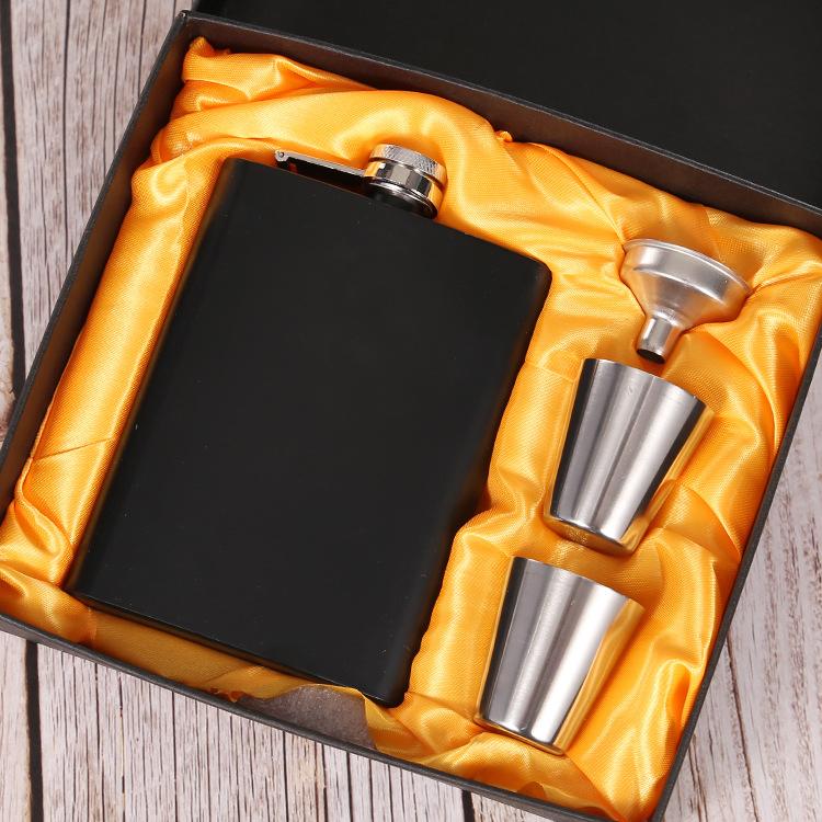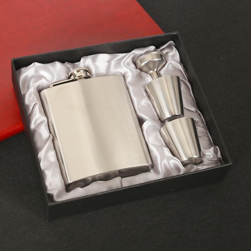 Venta al por mayor acero inoxidable pequeña petaca de vino metal portátil botella de vino blanco traje caja de regalo 7oz juego de vino pintura en aerosol
