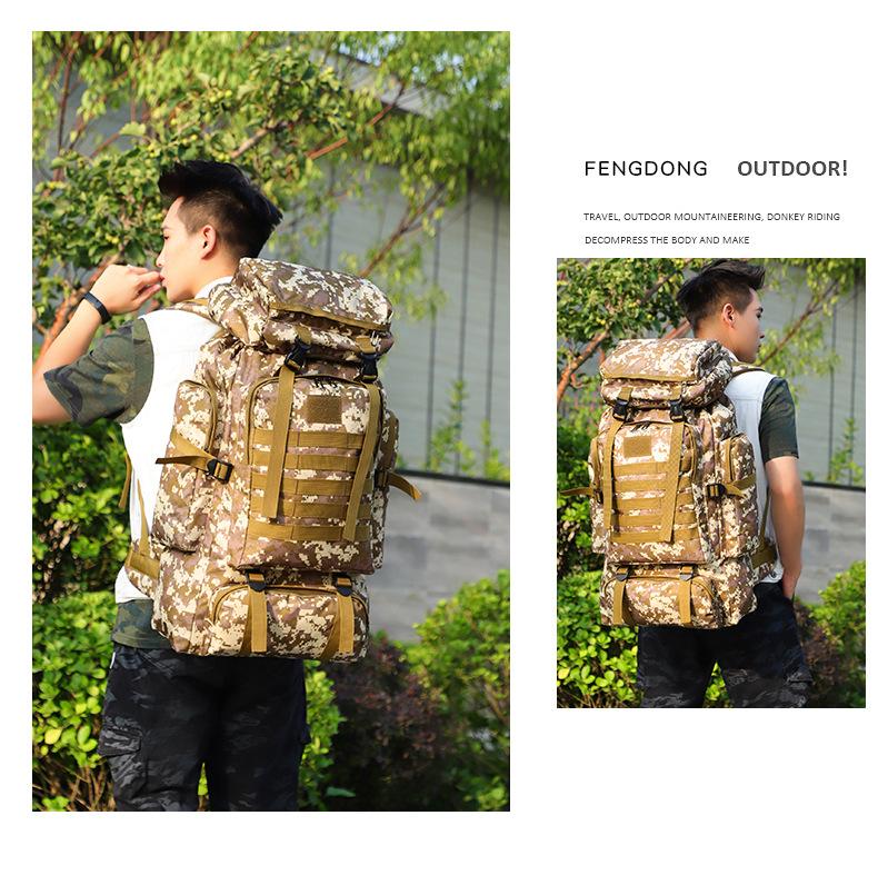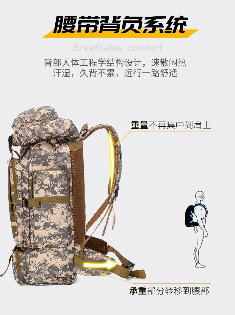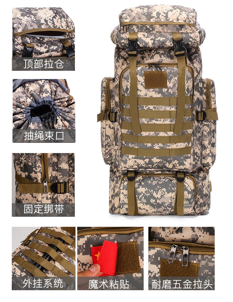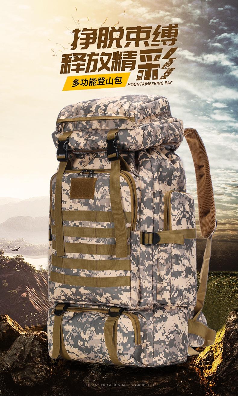 Mochila de Montaña 80 Litros Transfronteriza Multifuncional Deportiva y de Ocio Camuflaje Gran Capacidad