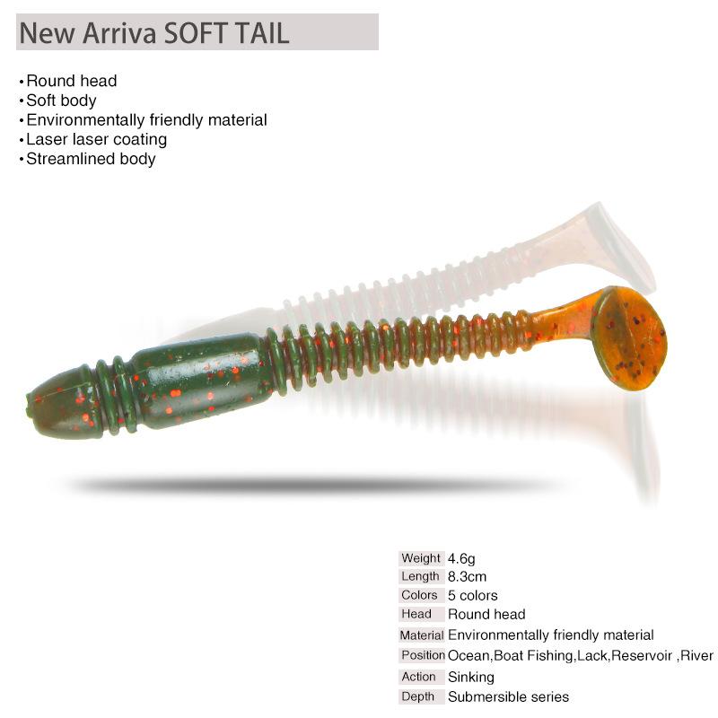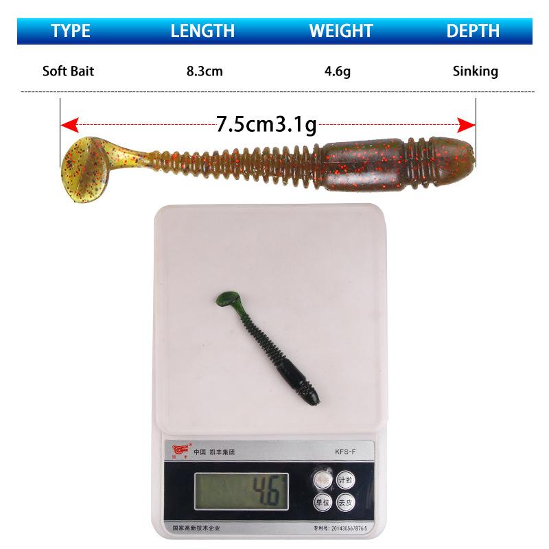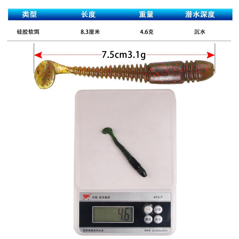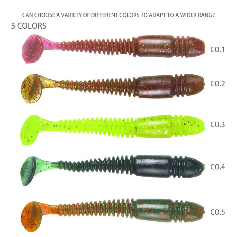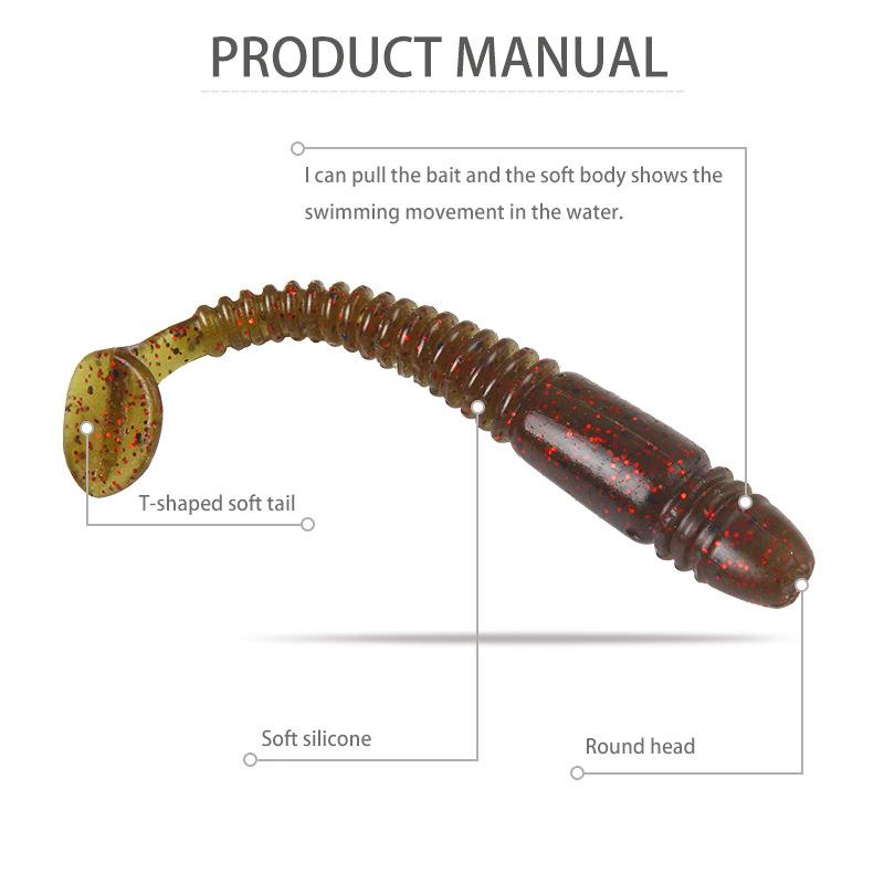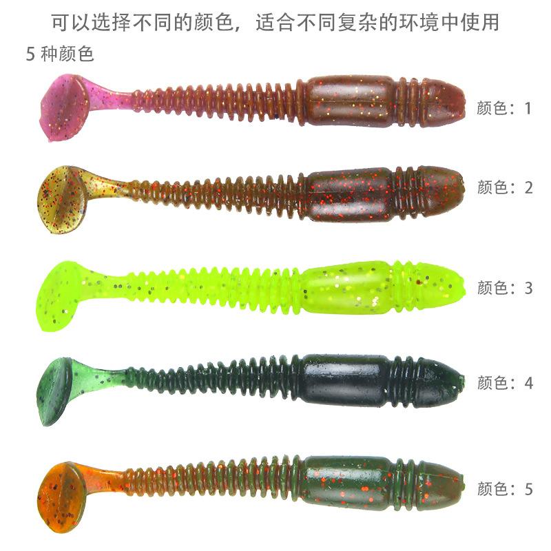 Cebo flotante Luya transfronterizo, cebo blando con cola en T de 5 cm/7,5 cm/10 cm, cebo de gusano blando de simulación. (5 piezas por bolsa)