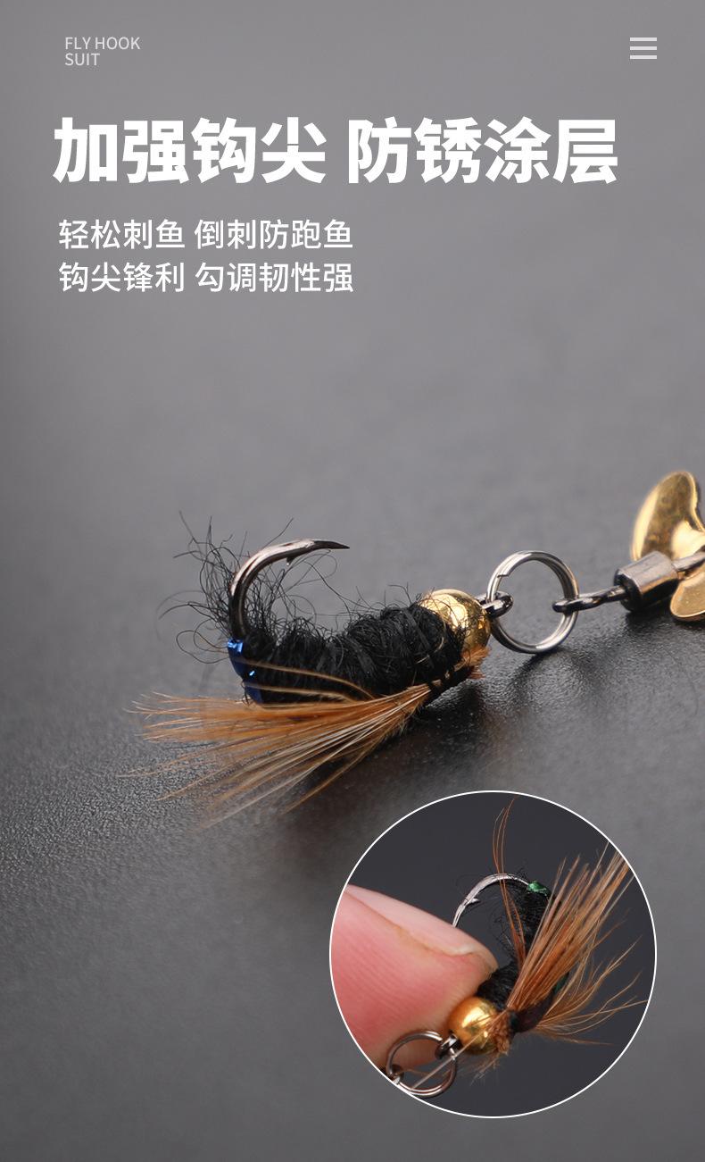 Grupo de pesca con anzuelo de mosca, semillas de melón, lentejuelas giratorias, traje engreído, tira blanca, boca de caballo, dispensador asistente, micro-Luya, cebo falso, mosquito venenoso