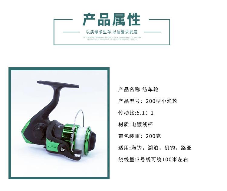 Carrete de pesca pequeño tipo 200 con línea, rueda giratoria, carrete de pesca en roca, equipo de pesca, caña de mar, caña Luya, rueda de pesca