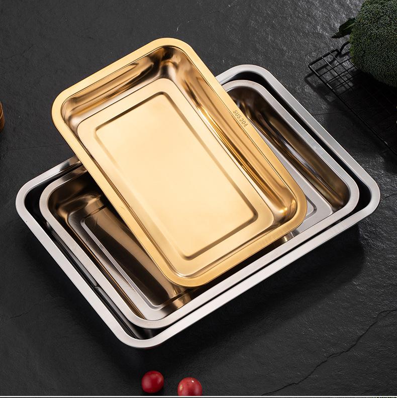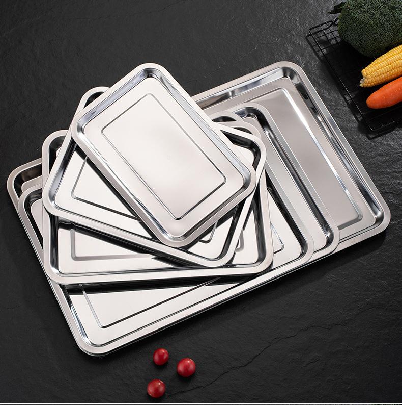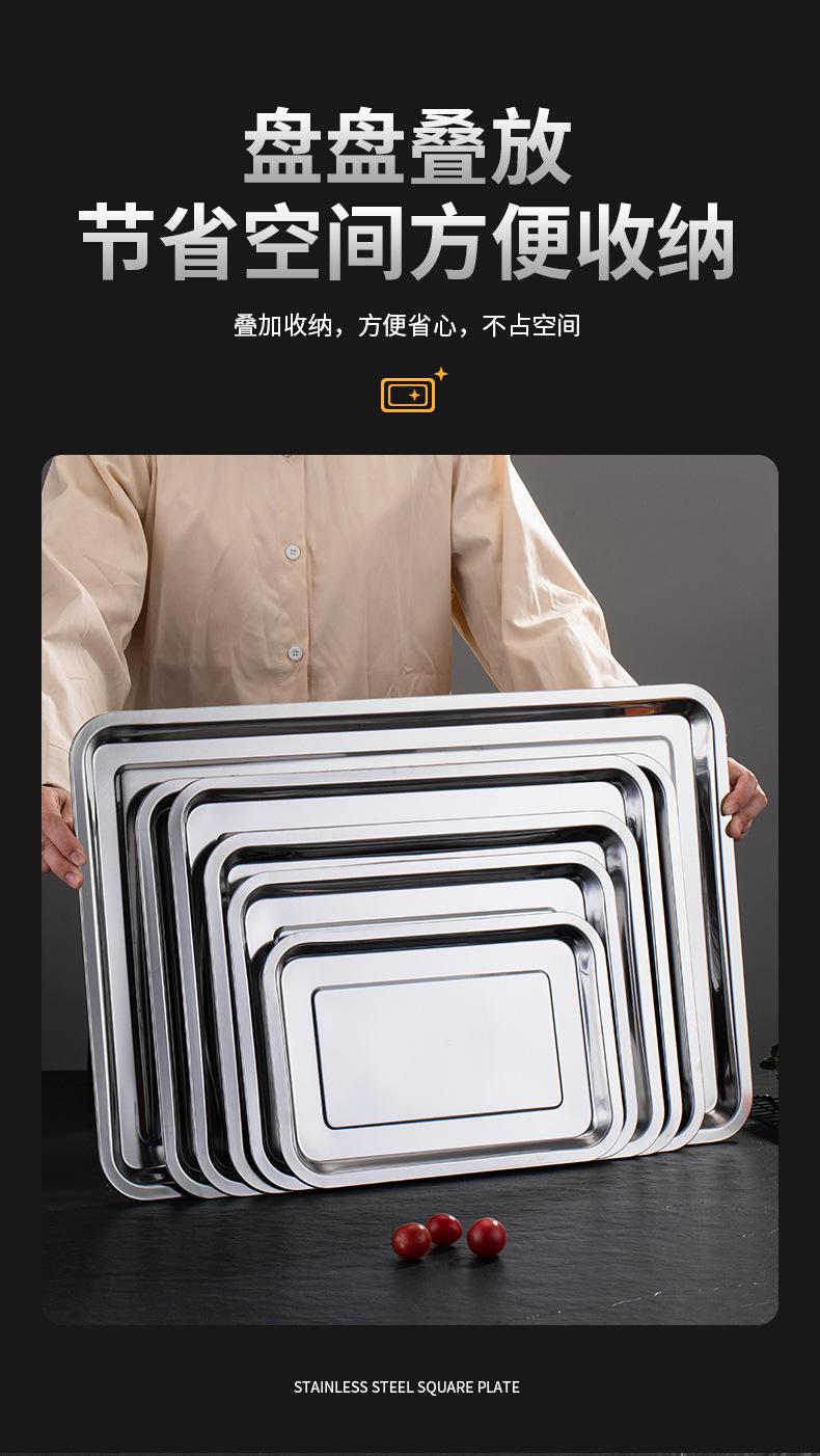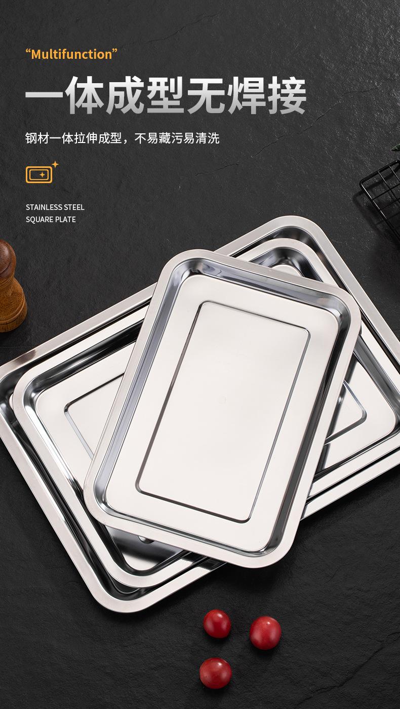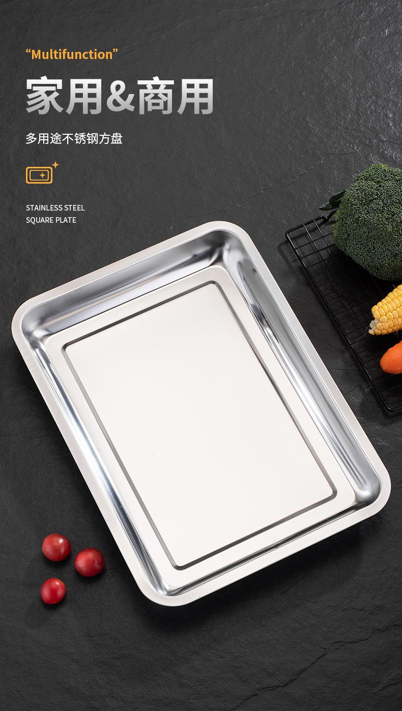 Bandeja rectangular de acero inoxidable 304, plato para cena, plato cuadrado, plato para barbacoa, plato de pescado al vapor de fondo plano, plato de arroz al vapor, plato de fruta