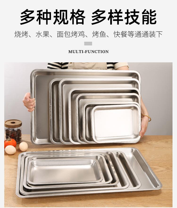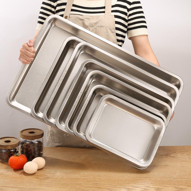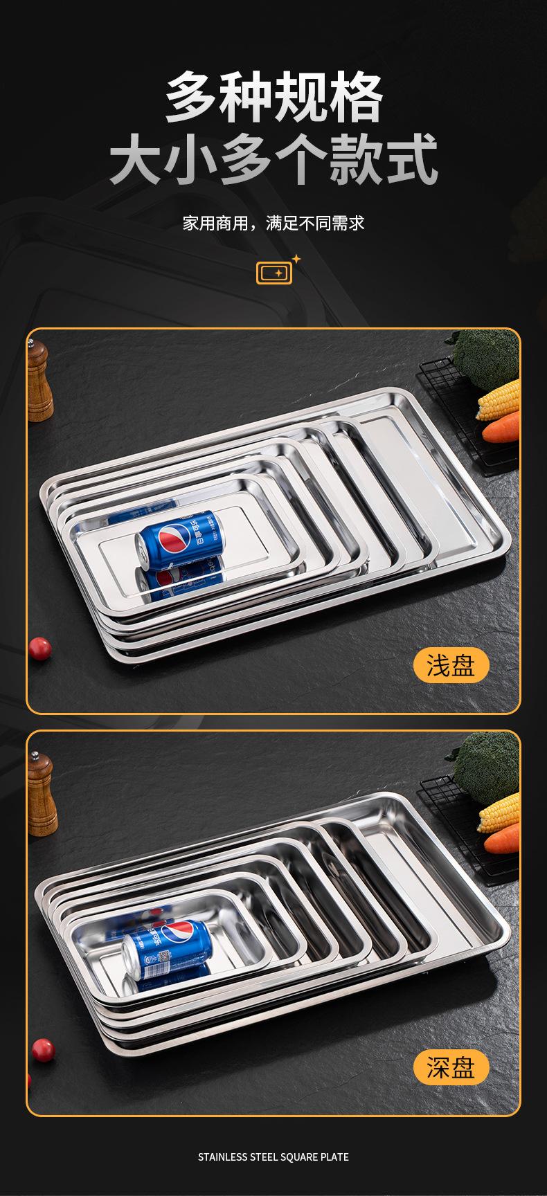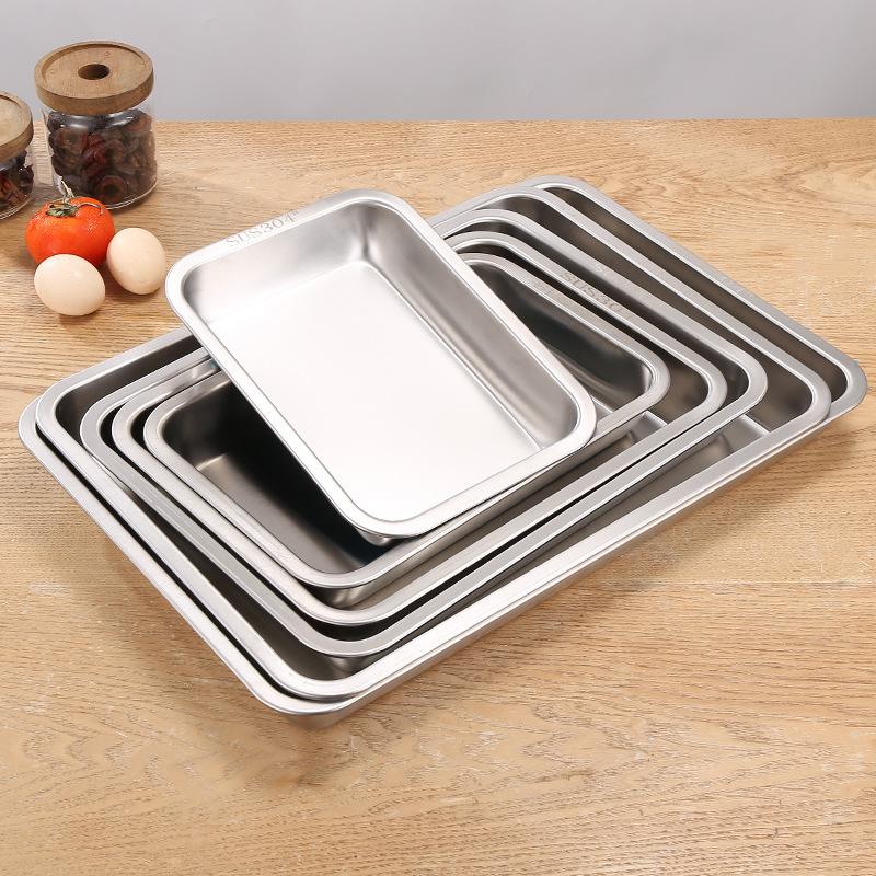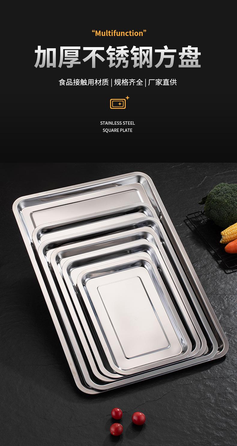 Bandeja rectangular de acero inoxidable 304, plato para cena, plato cuadrado, plato para barbacoa, plato de pescado al vapor de fondo plano, plato de arroz al vapor, plato de fruta