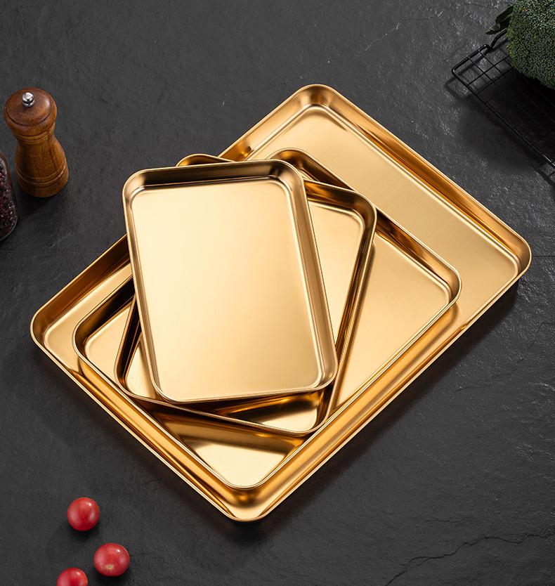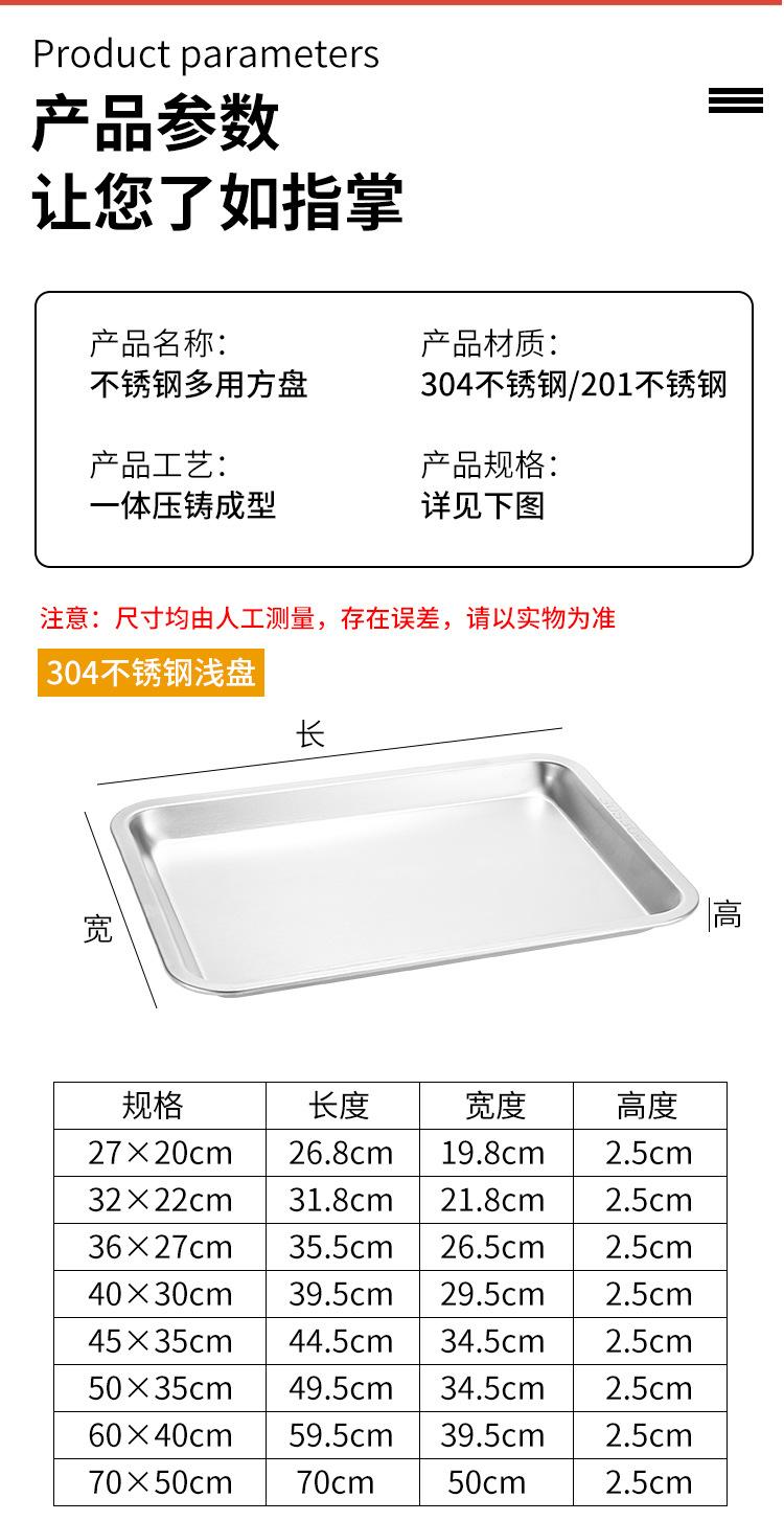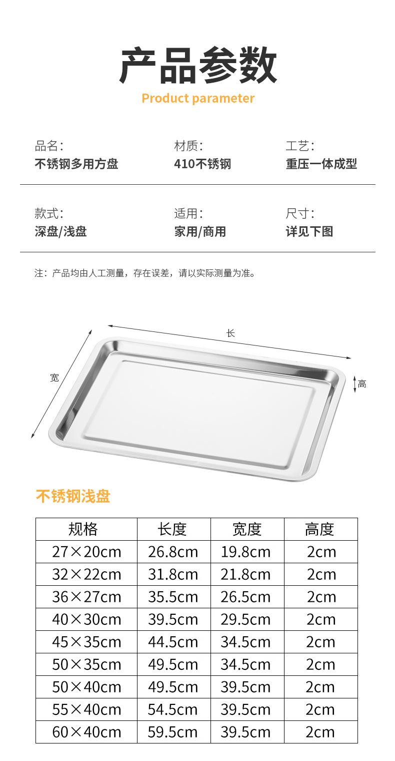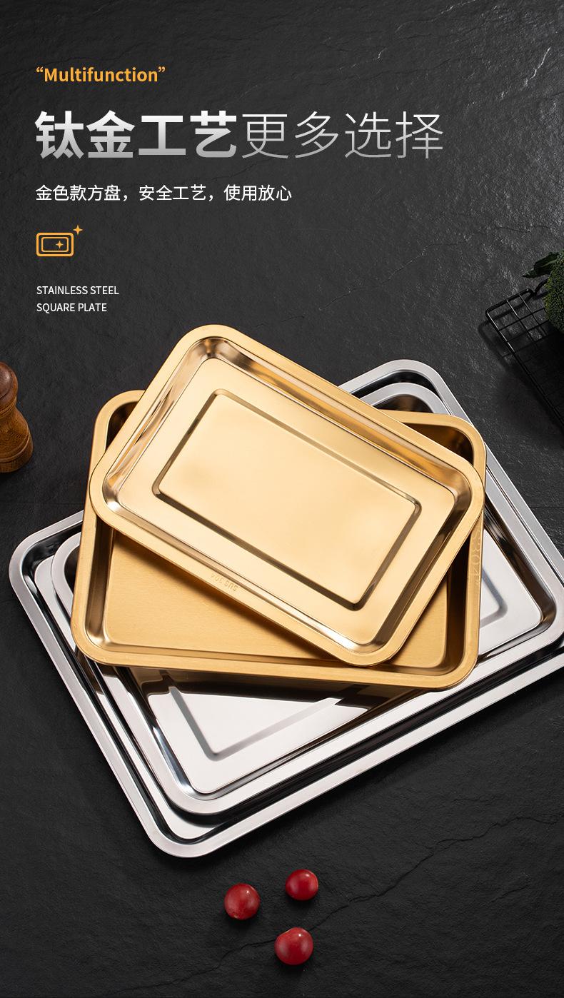 Bandeja rectangular de acero inoxidable 304, plato para cena, plato cuadrado, plato para barbacoa, plato de pescado al vapor de fondo plano, plato de arroz al vapor, plato de fruta
