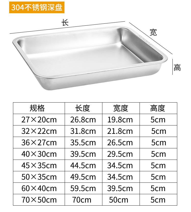 304 extra thick plate 27*20*2cm (can be put in the refrigerator oven)
