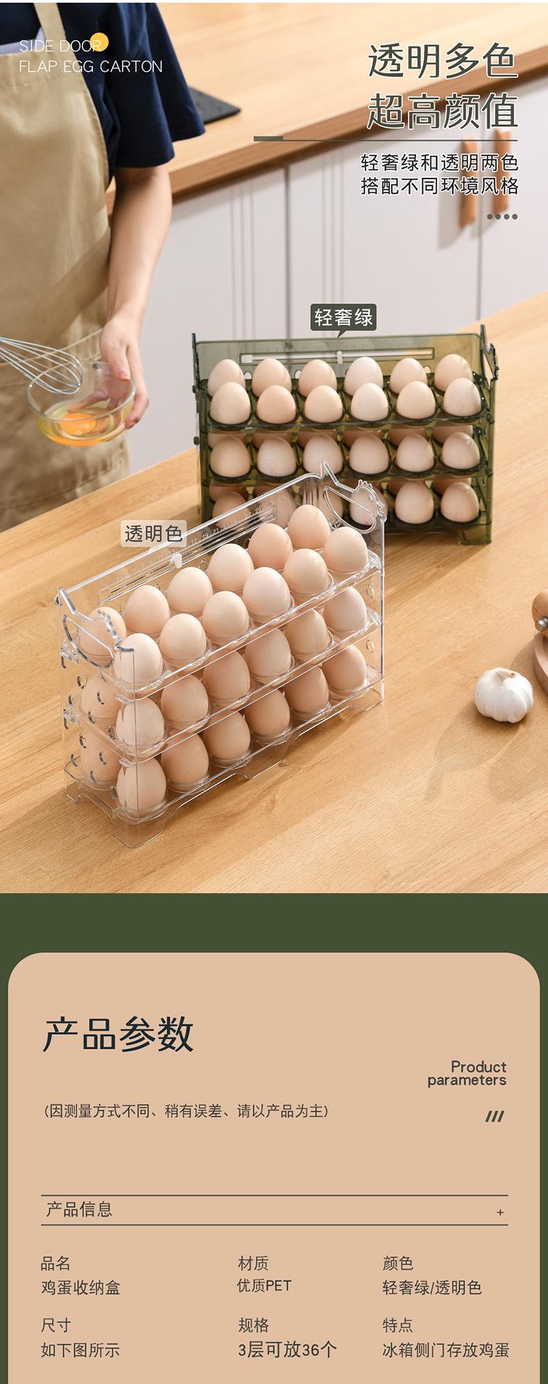 PP36 egg rack with side door, PET36 egg rack with side door-transparent, PET36 egg rack with side door-Green