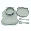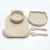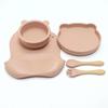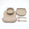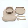 Light Brown (Bear 1 silicone plate + bear bowl + Bib + full silicone + spoon + fork)