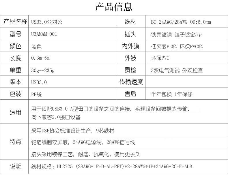 Adecuado para conectar dispositivos de puerto hembra USB3.0A tipo A, logrando transmisión de datos de alta velocidad entre dos dispositivos, y compatible con versiones anteriores de dispositivos USB2.0