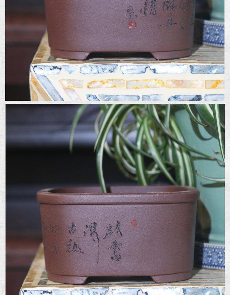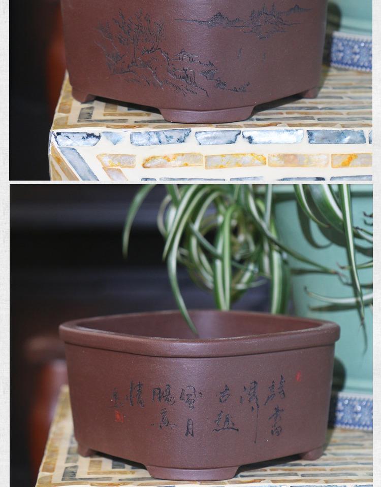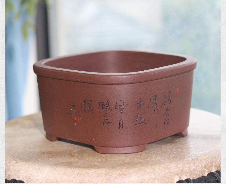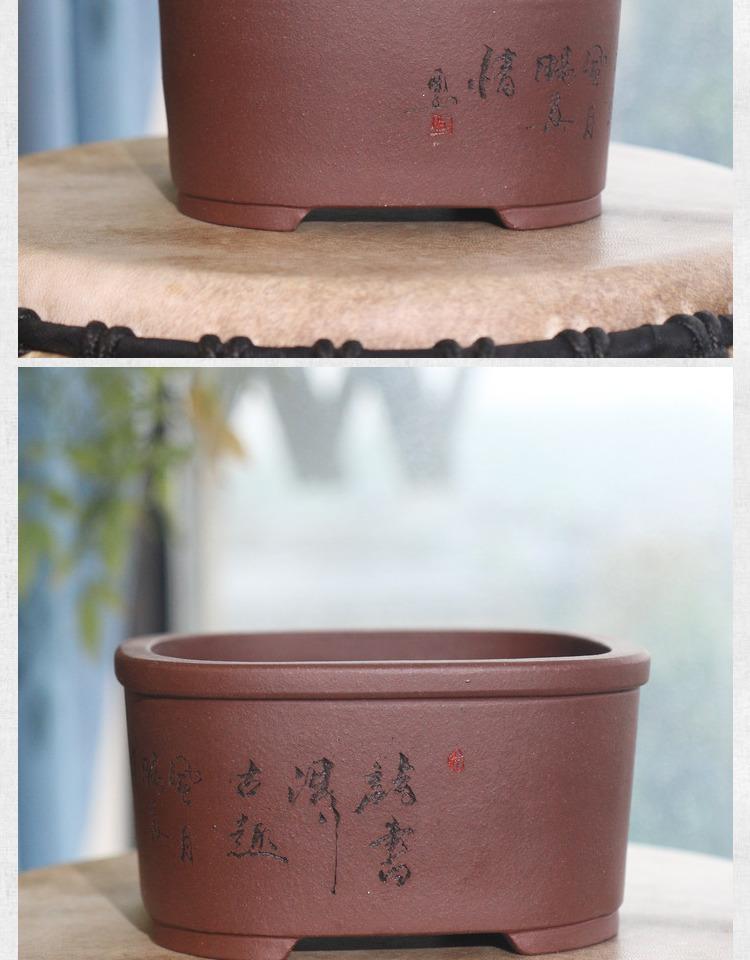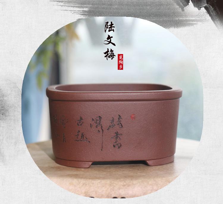 Maceta cuadrada de arena morada Lu Wenmei con cálamo multicarnoso, maceta miniatura para bonsái, maceta de escritorio para balcón, maceta para bonsái de interior hecha a mano