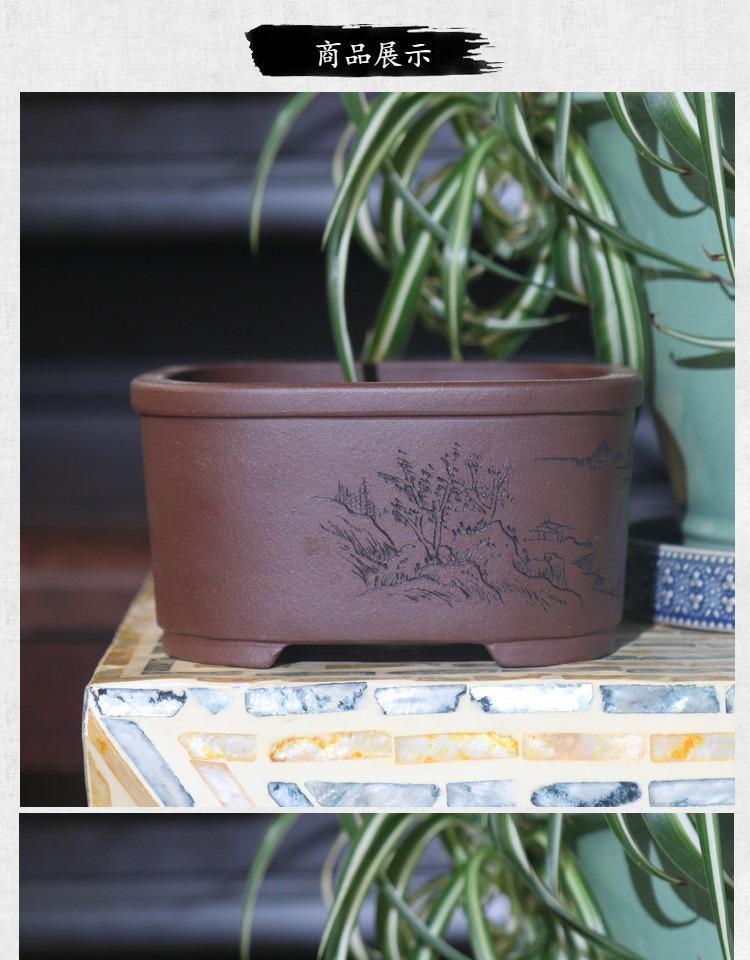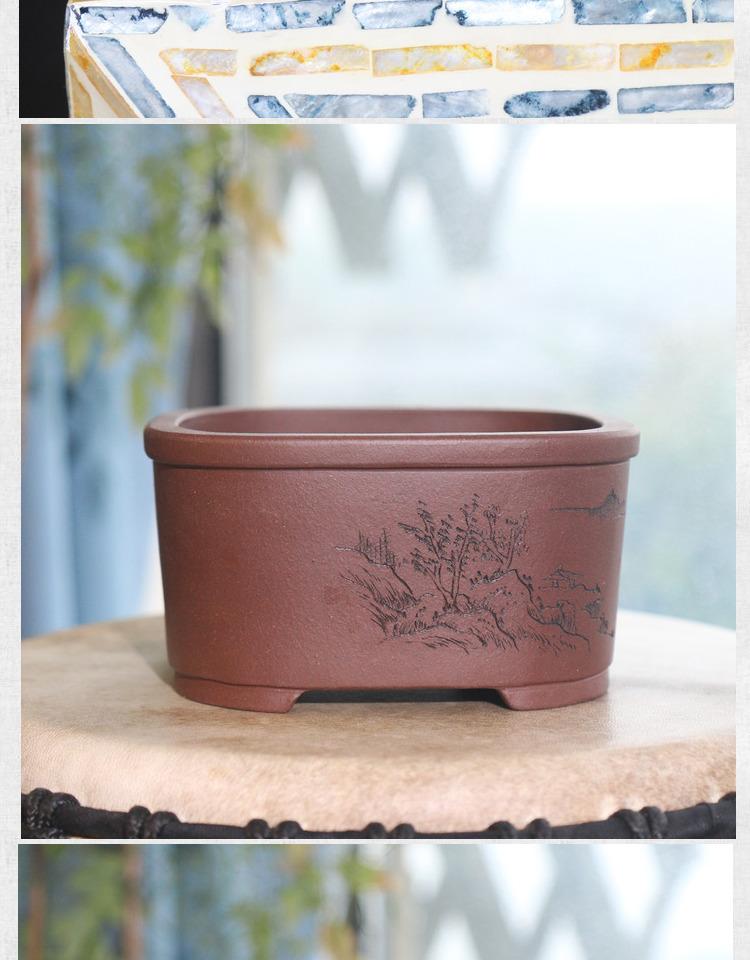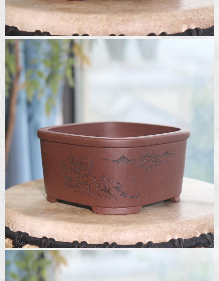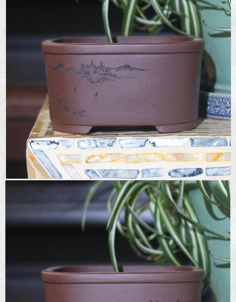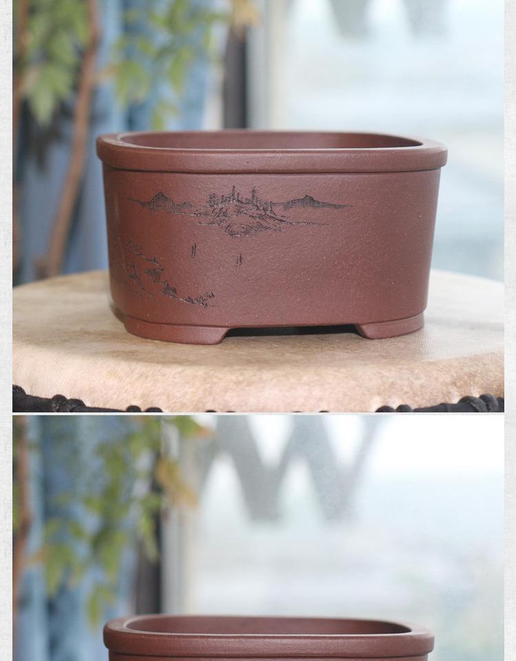 Maceta cuadrada de arena morada Lu Wenmei con cálamo multicarnoso, maceta miniatura para bonsái, maceta de escritorio para balcón, maceta para bonsái de interior hecha a mano