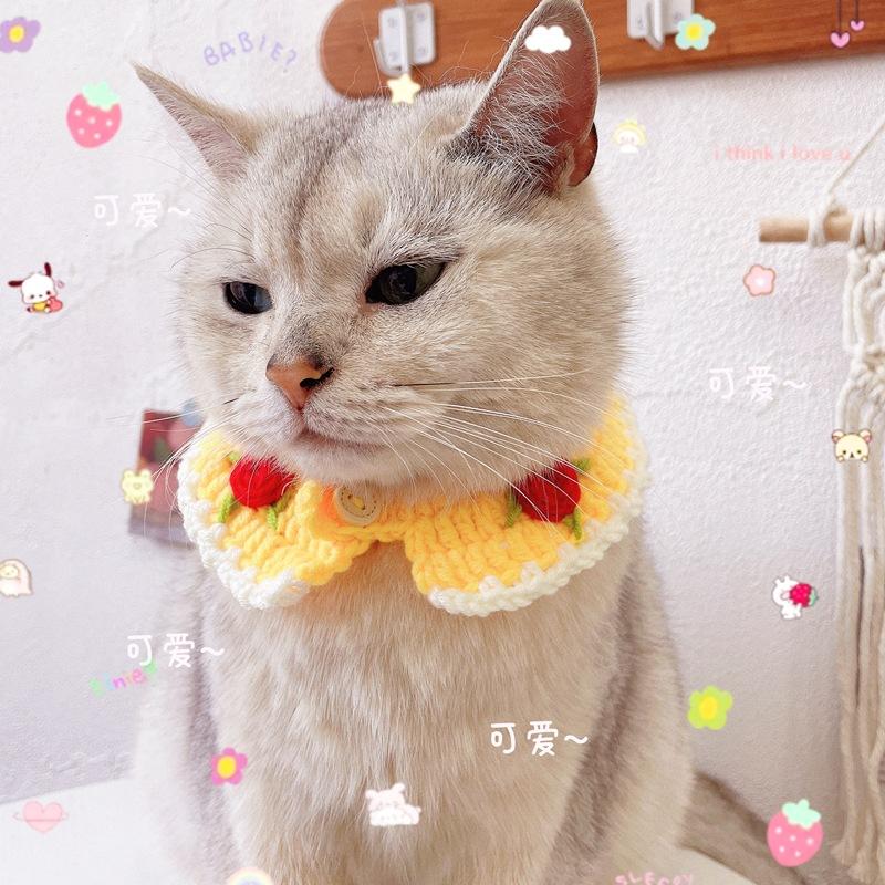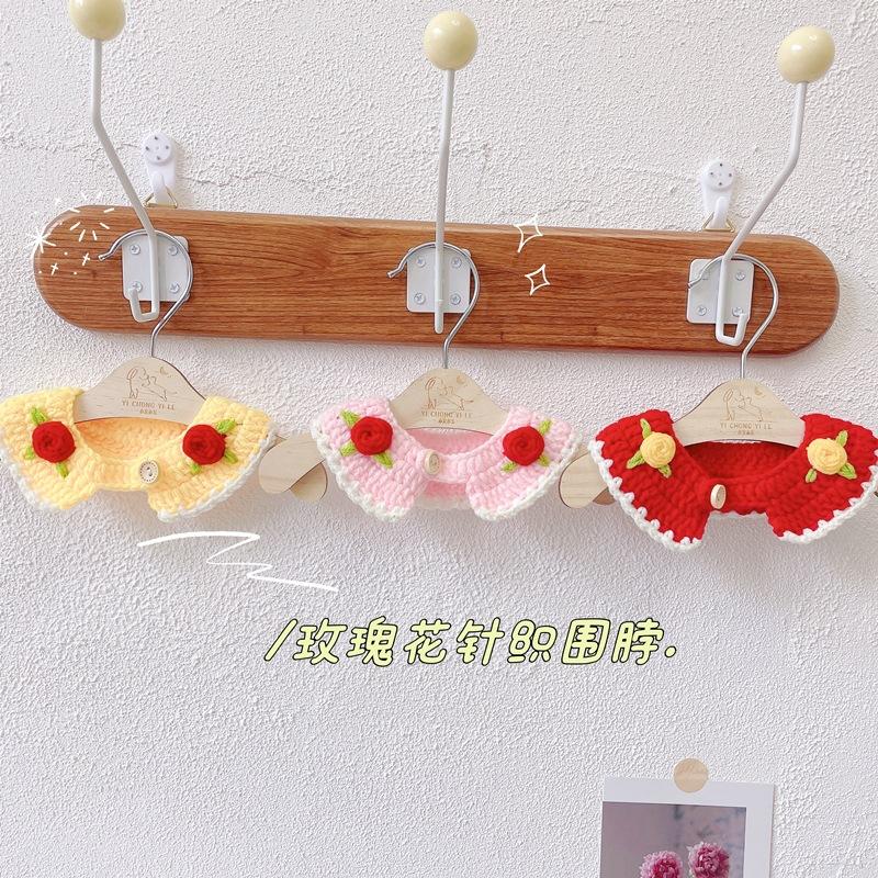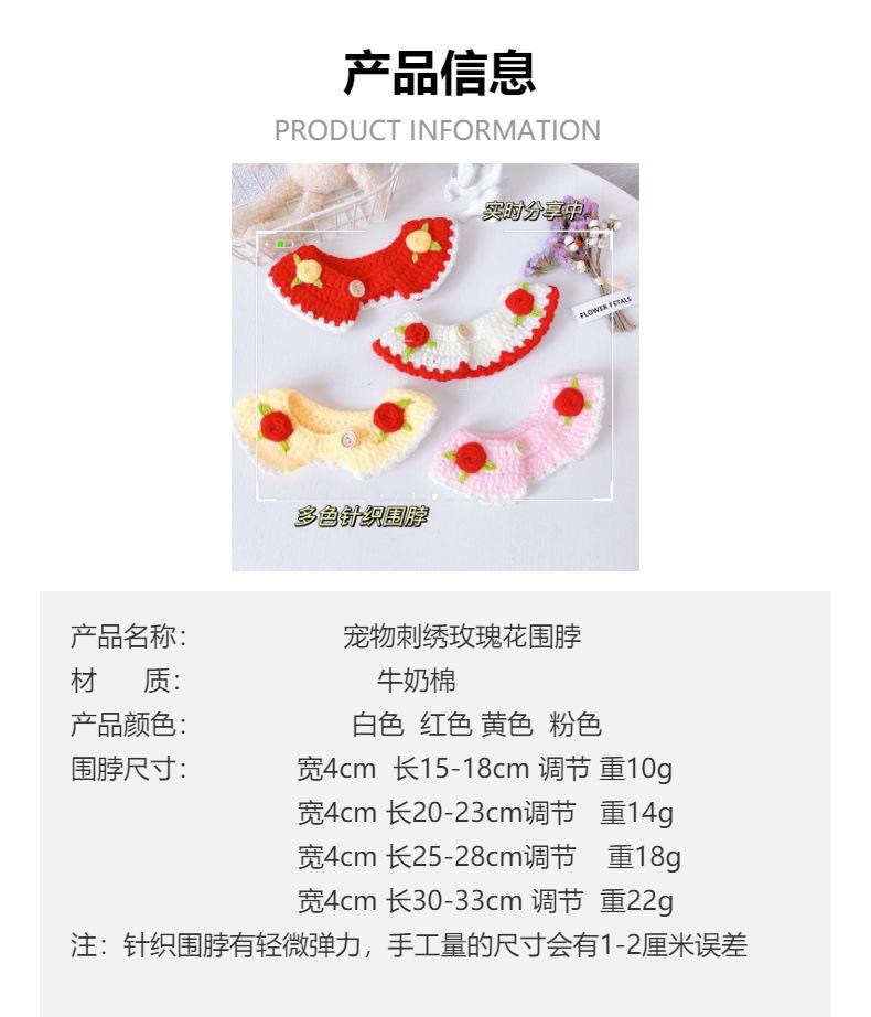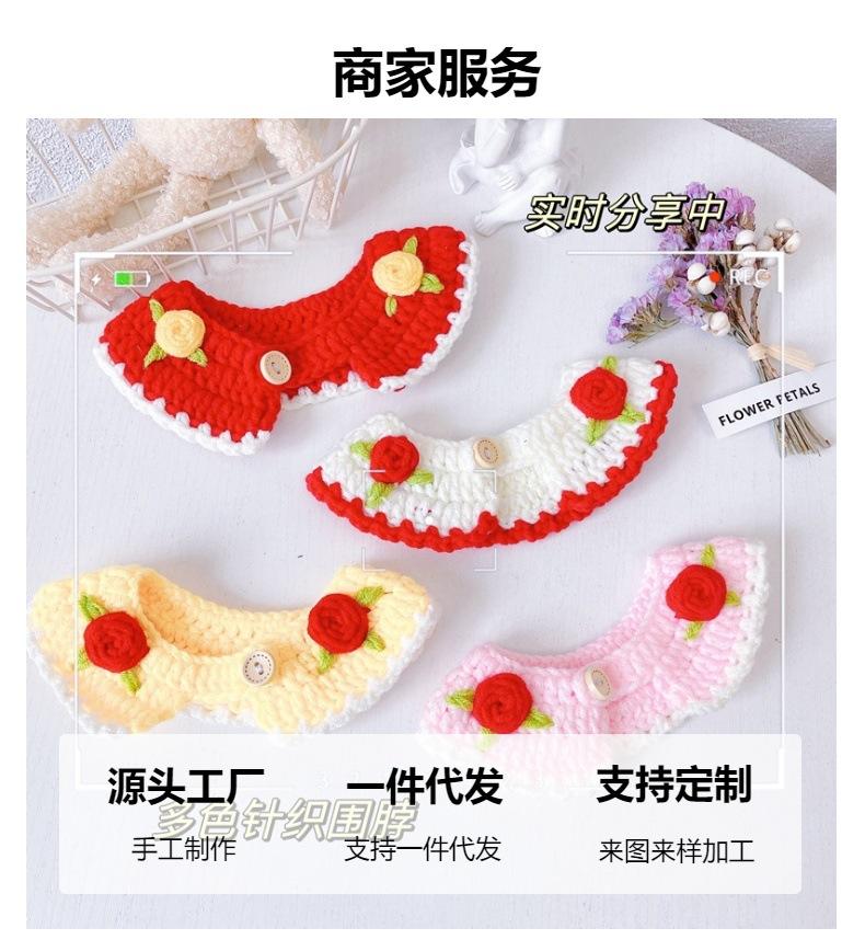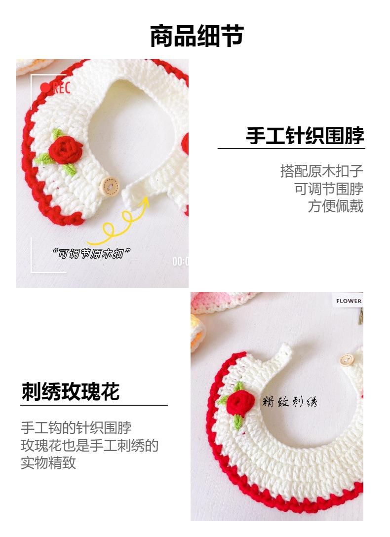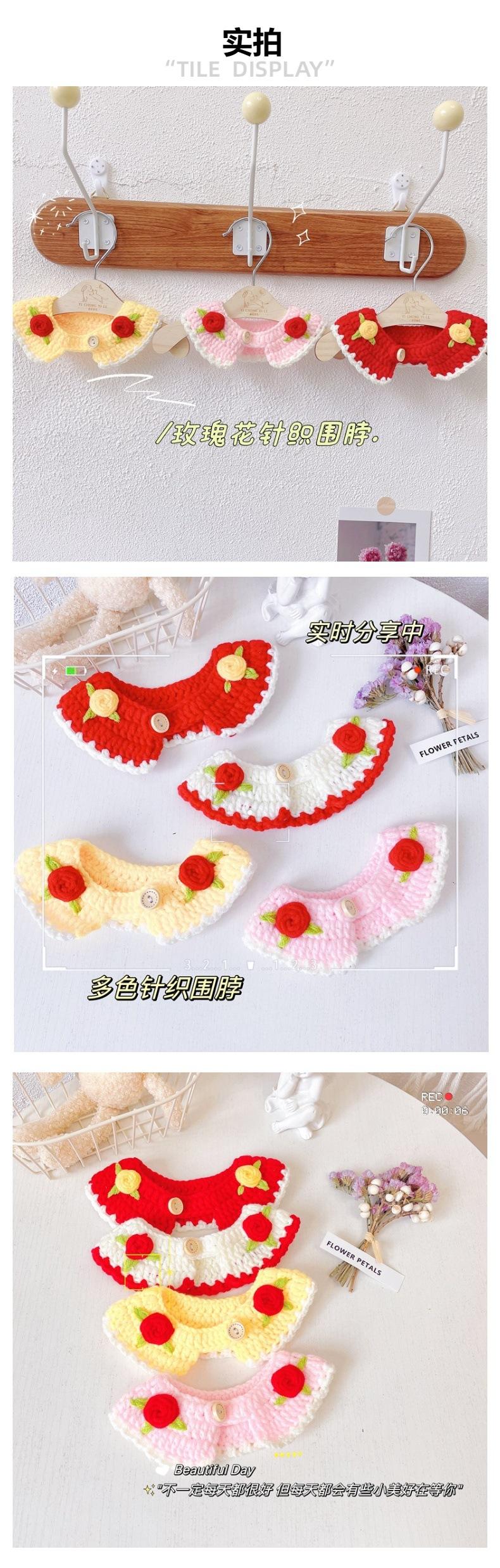 Bufanda de Lana para Mascota Gato Perro Bufanda Tejida Rosa Bordada Gato Oso Amargo Teddy Perro Hebilla Collar Rojo
