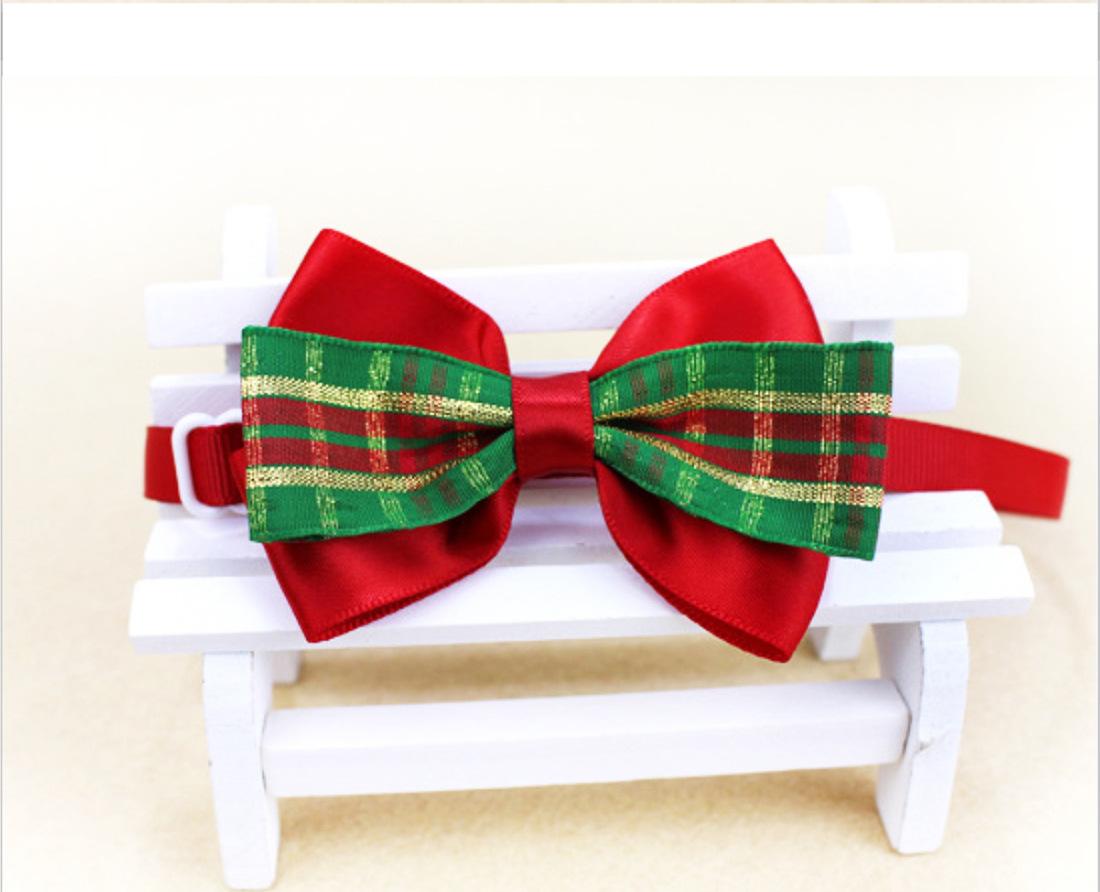 ¡Guau, la hermosa pajarita está aquí, perfecta para lucir guapo, genial o actuar como una chica linda. El lazo pequeño y exquisito tiene un patrón de Papá Noel y viene en rojo y verde. ¡Es muy adecuado para perros pequeños y gatos!