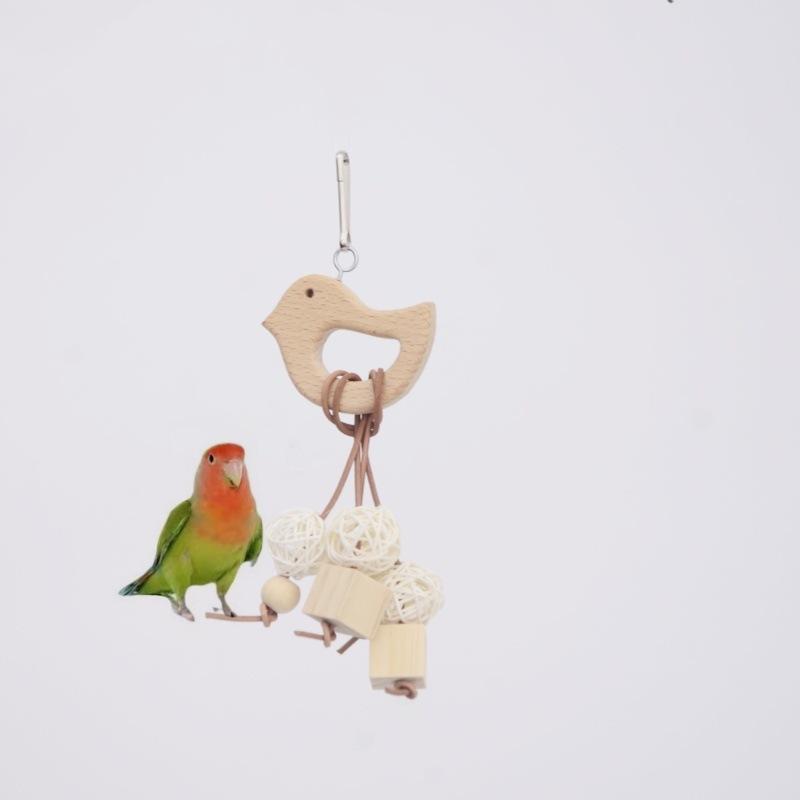 Juguete para loro transfronterizo, juguete para morder para loro, bola de ratán de madera, cuerda de cuero para moler dientes, cuerda para morder, ventas directas de fábrica