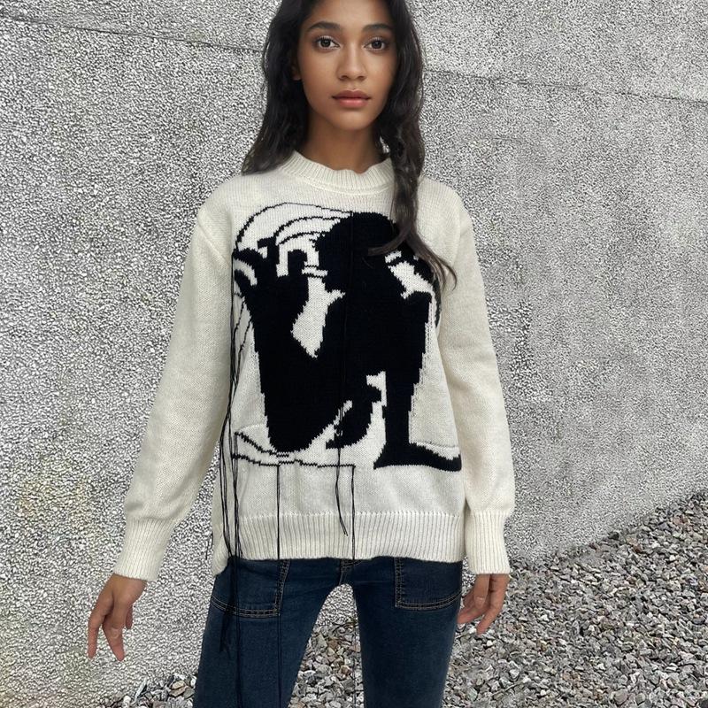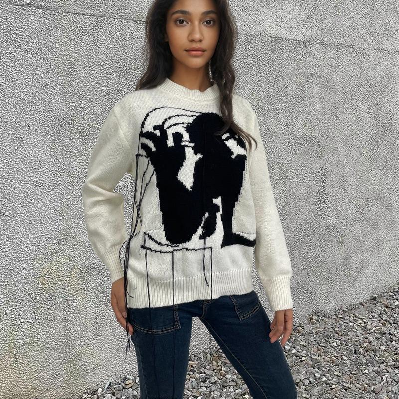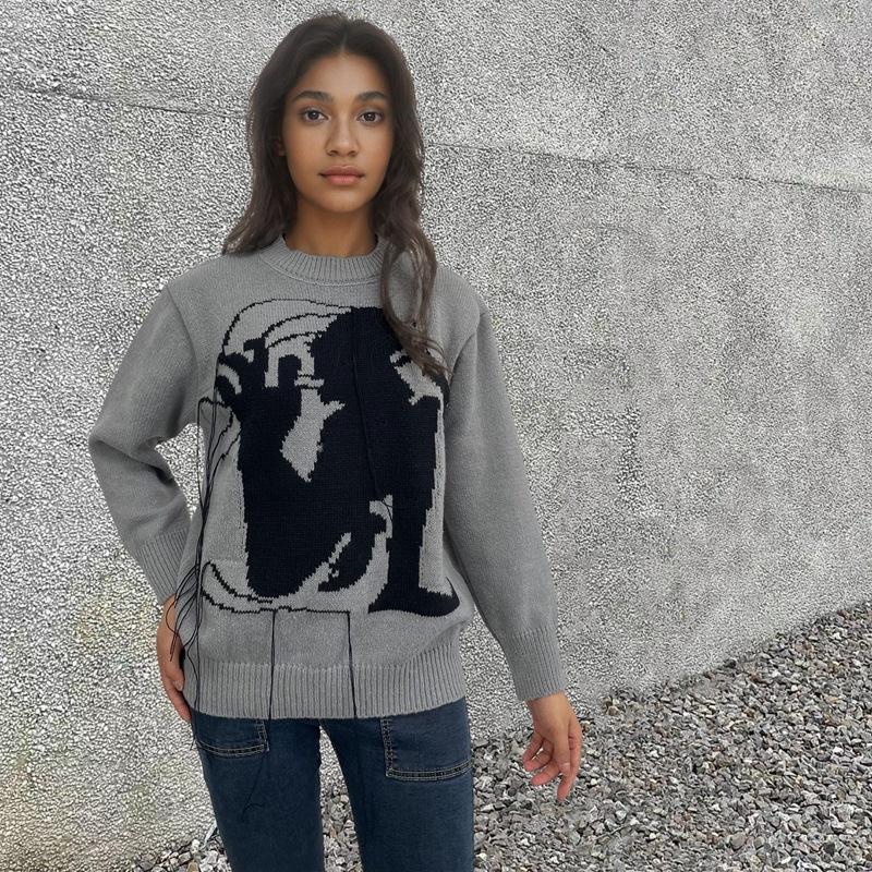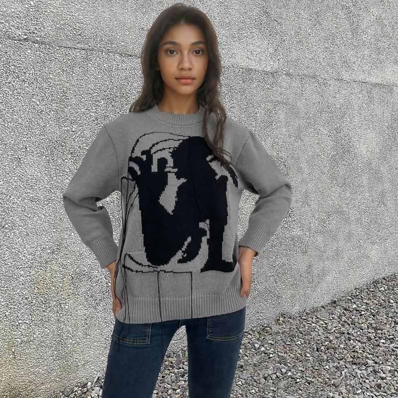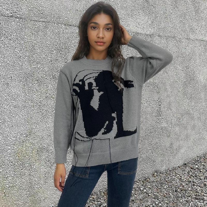 Suéter de punto holgado con cuello redondo y manga larga para mujer, estilo europeo y americano, de Amazon, para otoño e invierno.