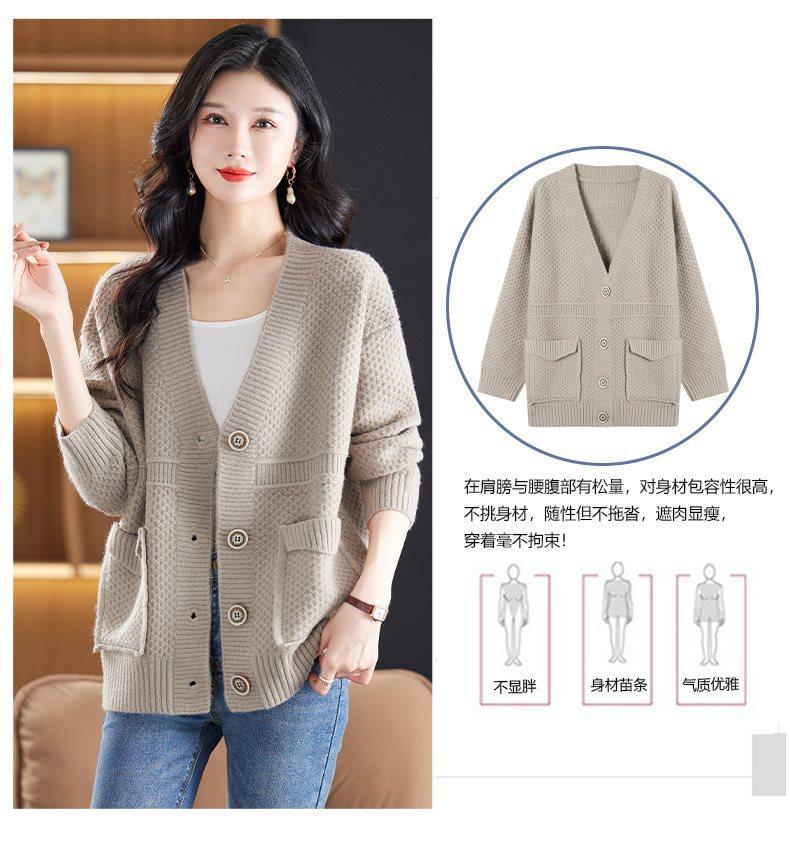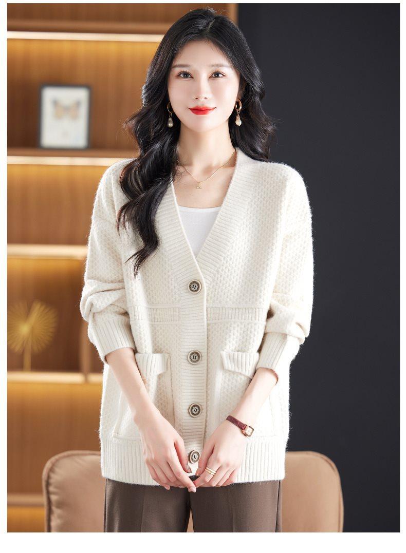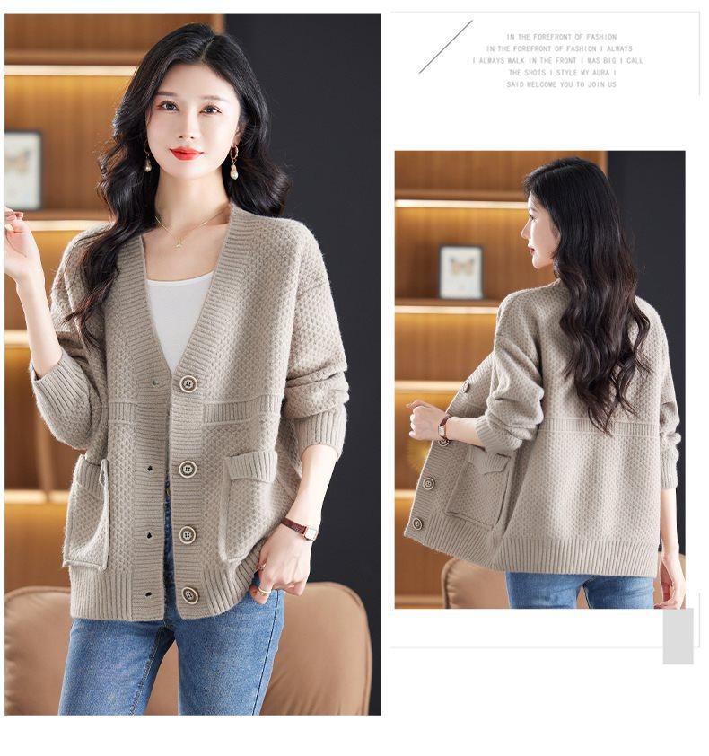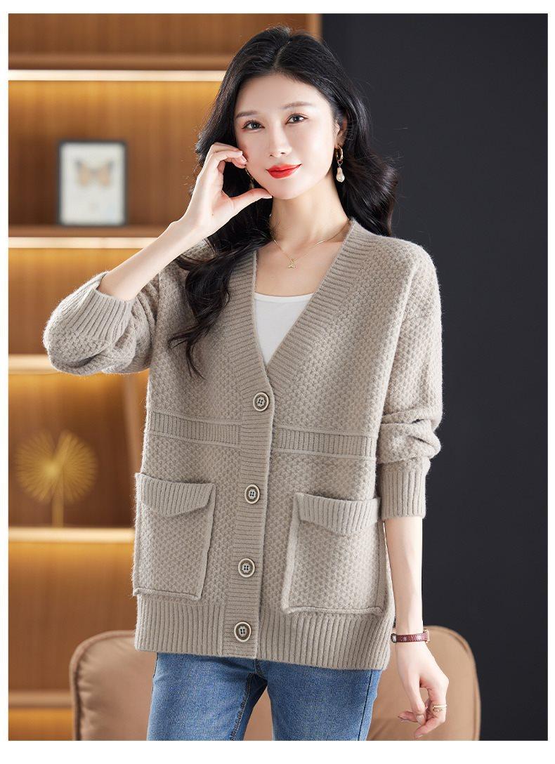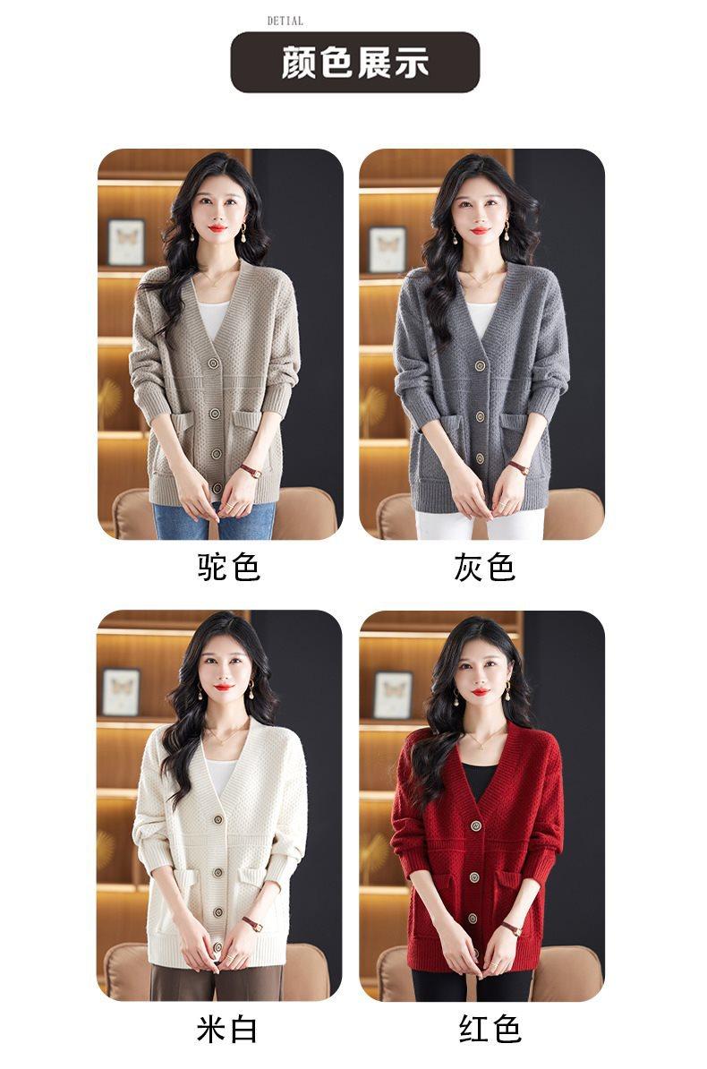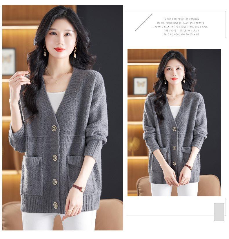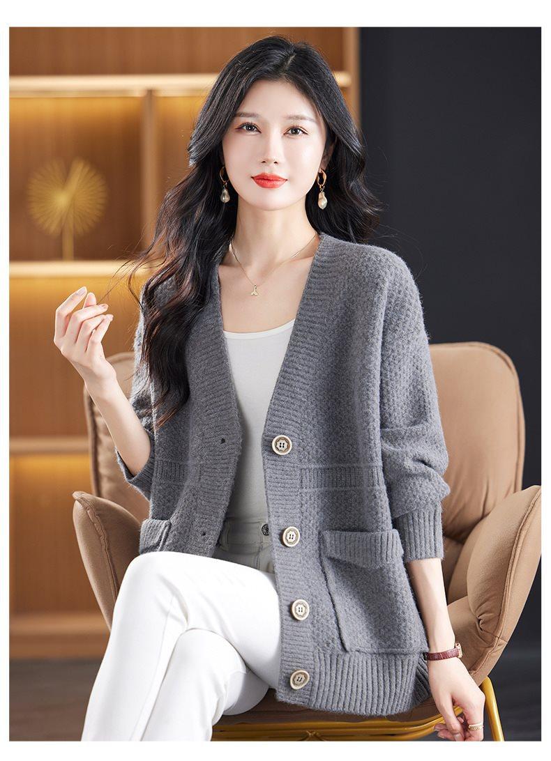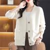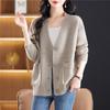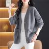 Cárdigan de punto estilo coreano de longitud media, recién llegado, primavera y otoño, suéter holgado con cuello en V de talla grande, abrigo de otoño e invierno para mujer, parte superior gruesa