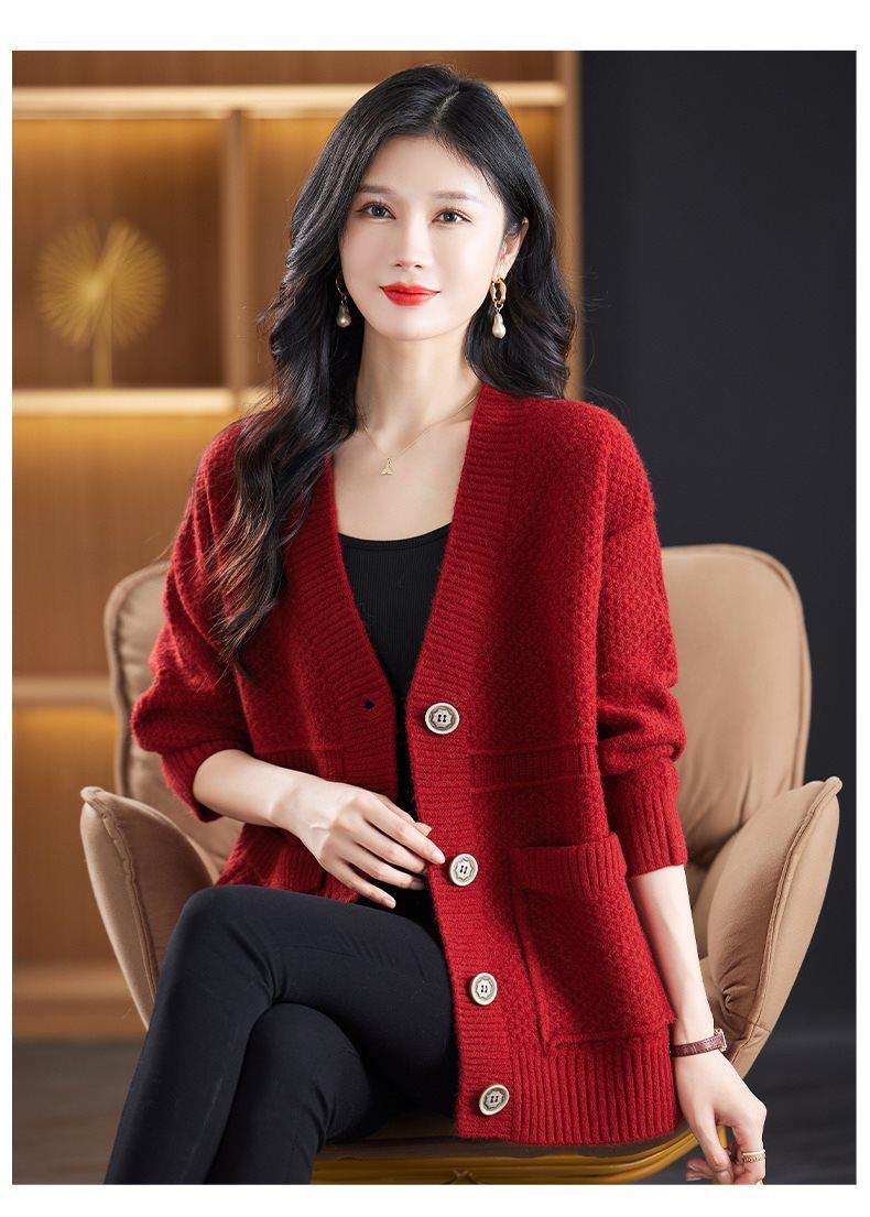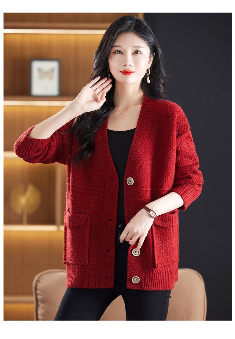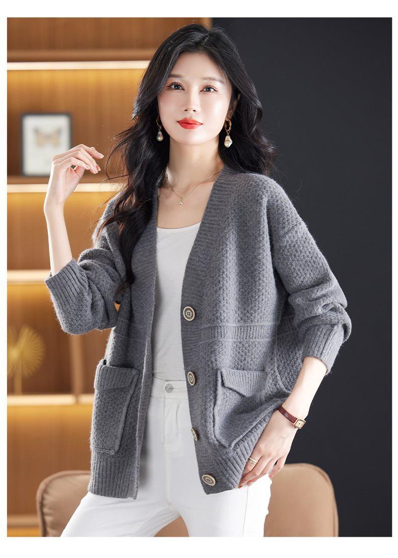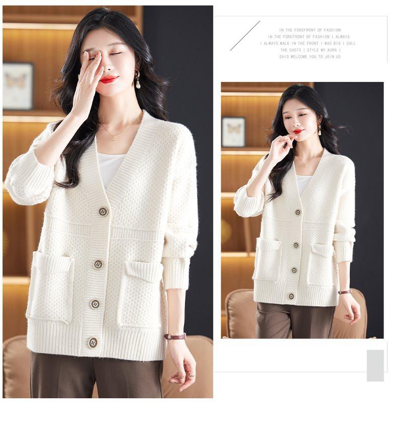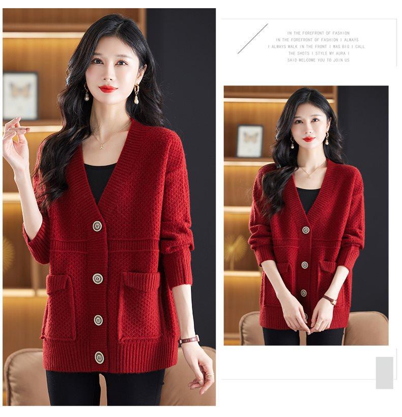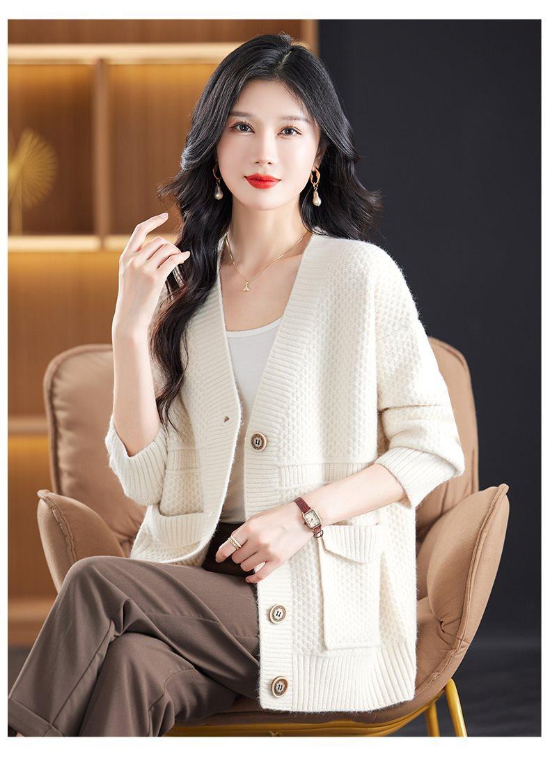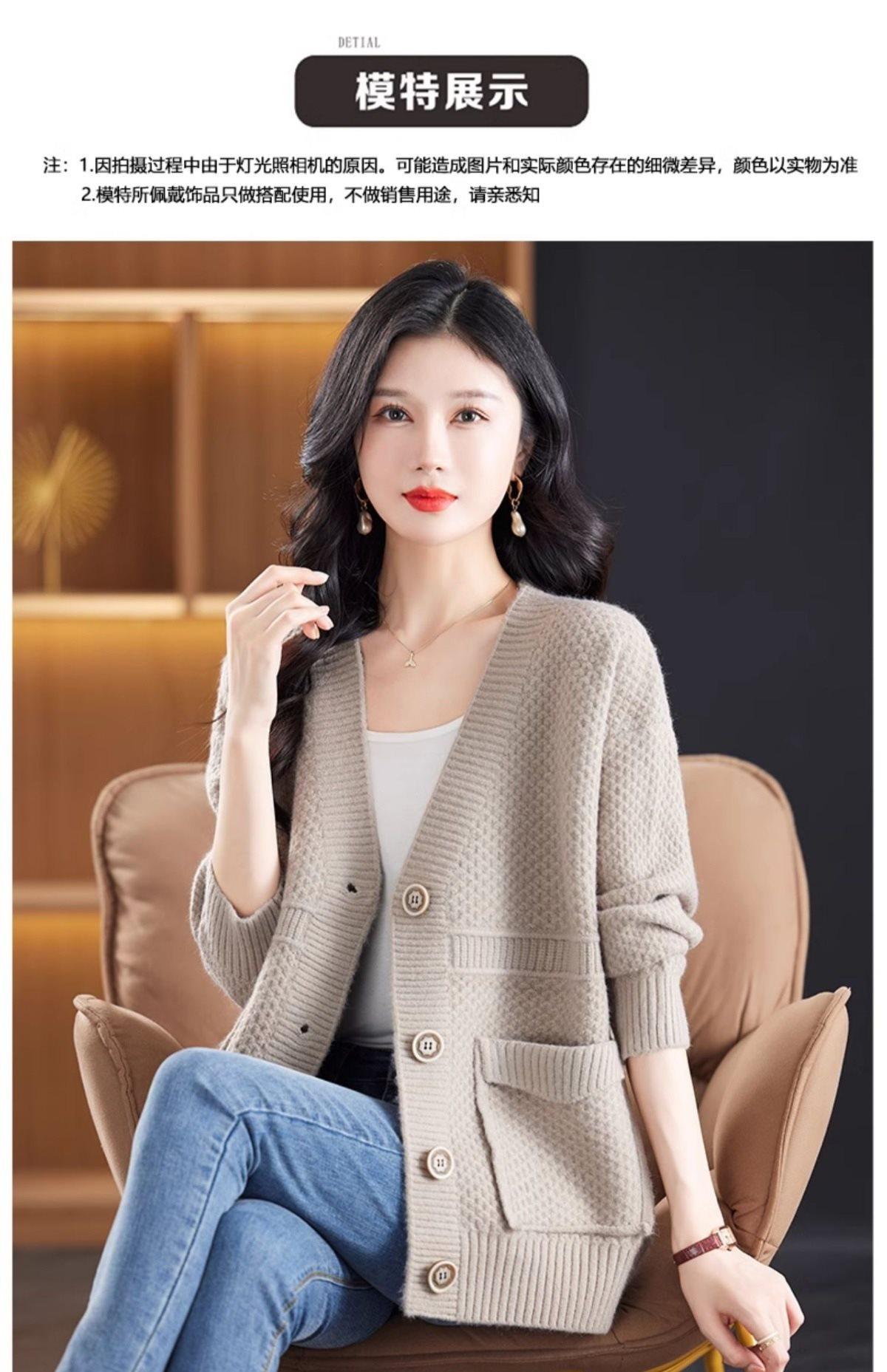 Cárdigan de punto estilo coreano de longitud media, recién llegado, primavera y otoño, suéter holgado con cuello en V de talla grande, abrigo de otoño e invierno para mujer, parte superior gruesa