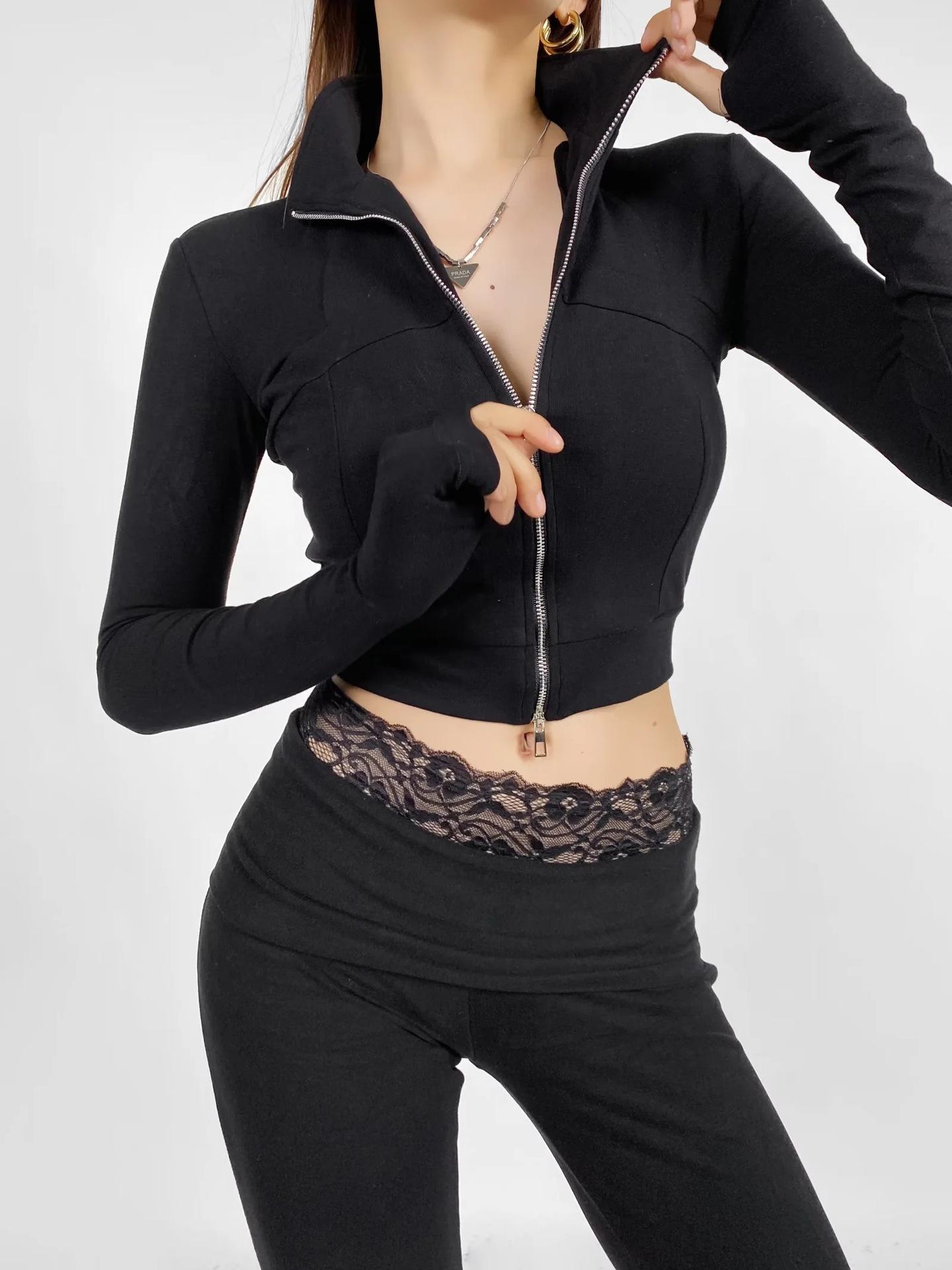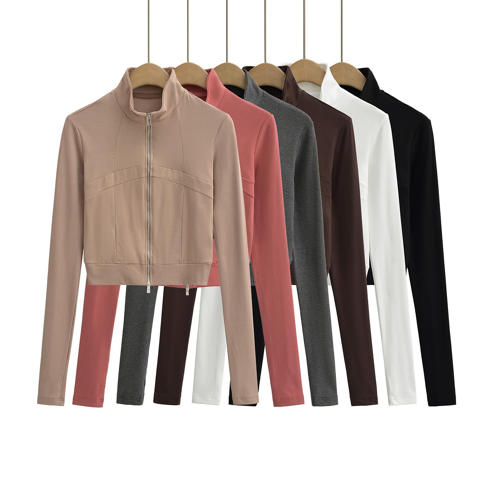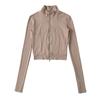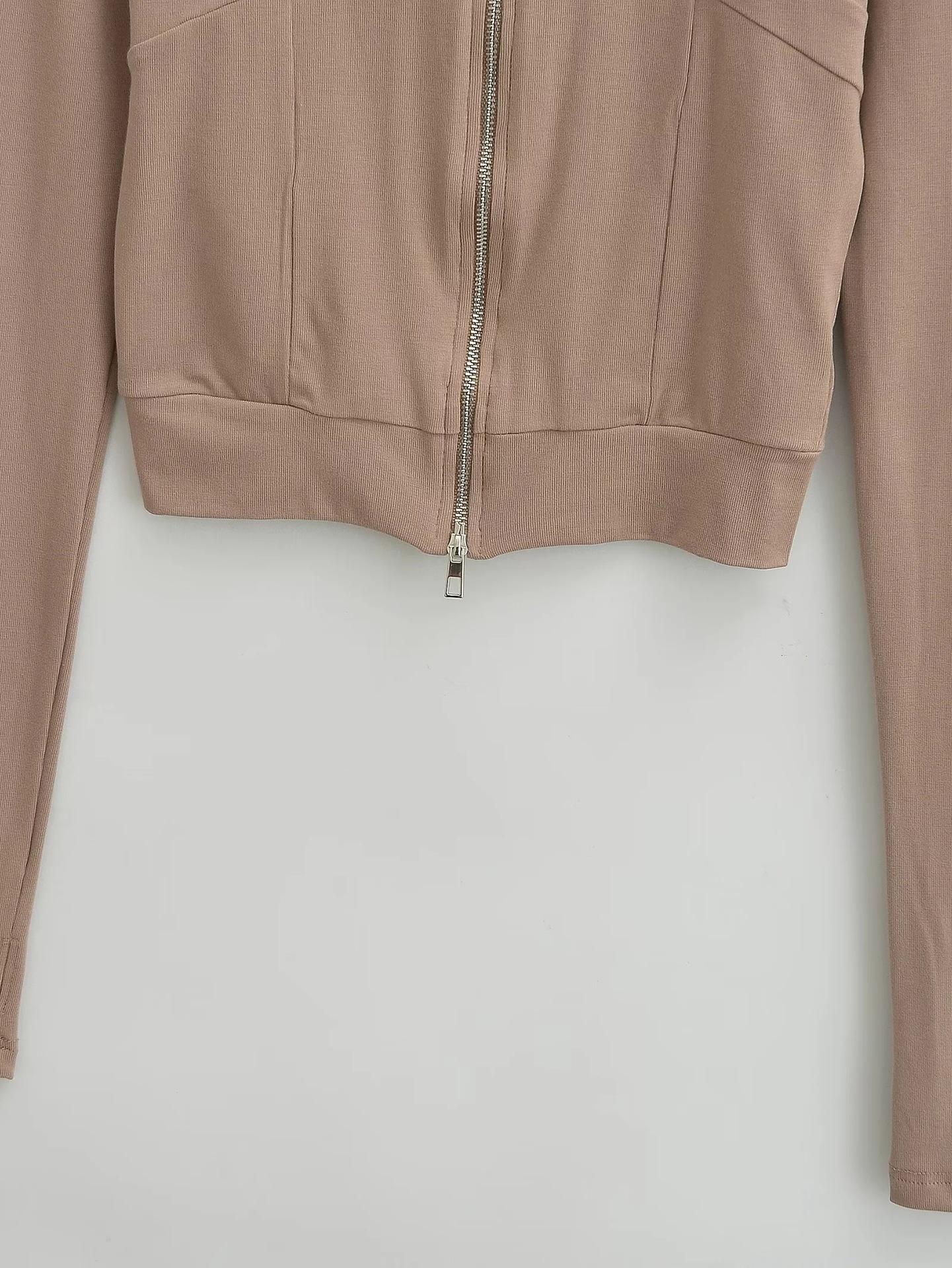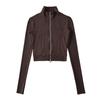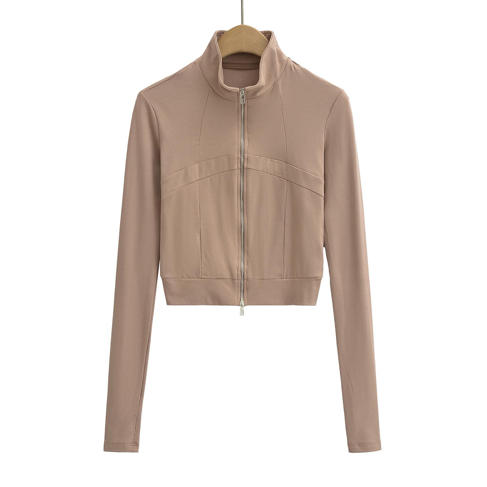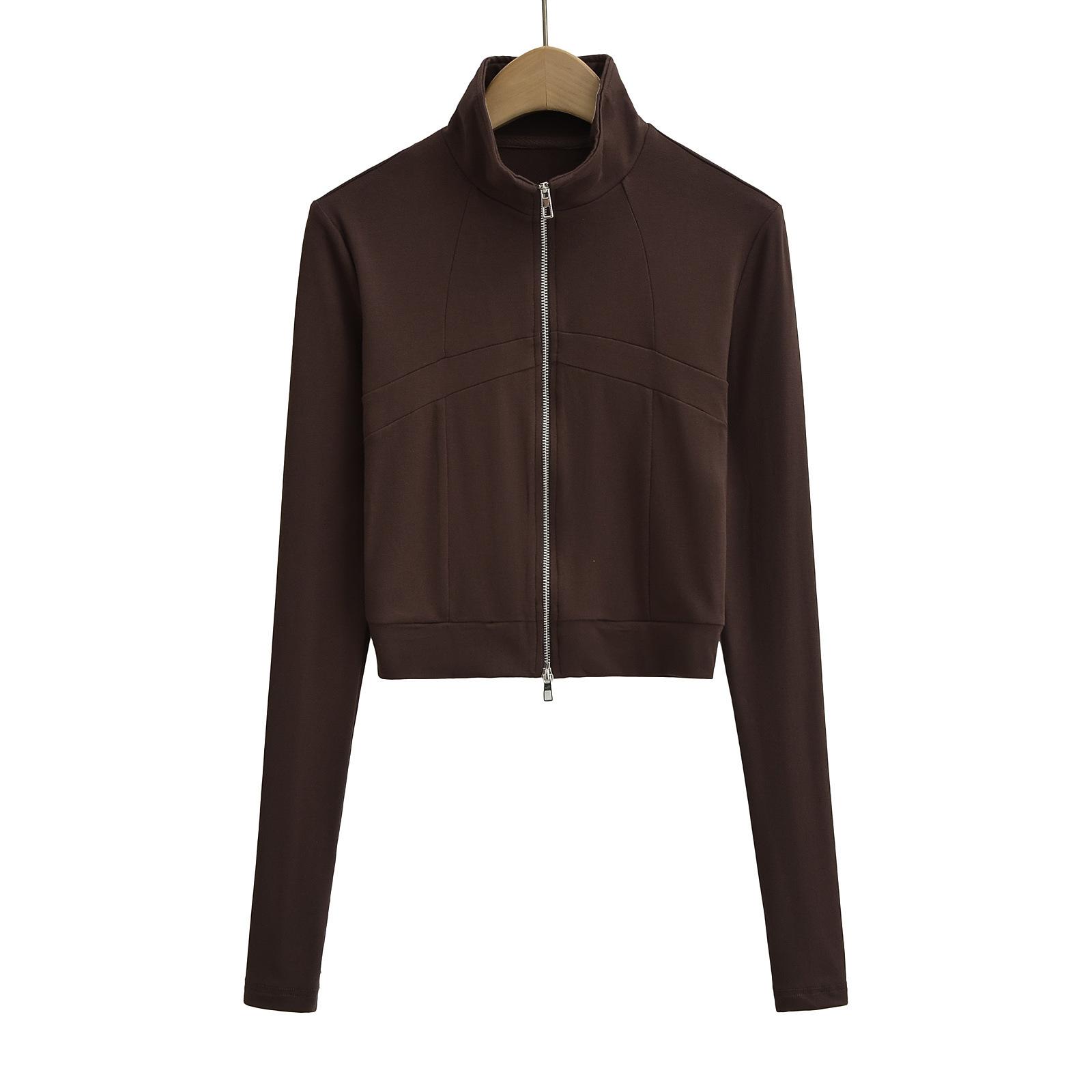 Chaqueta Deportiva Retro Estilo Americano para Chica Sexy con Doble Cremallera, Espina de Pescado, Corte Ajustado, Manga Larga para Mujer, Ropa de Primavera, Top Cárdigan Corto Ajustado