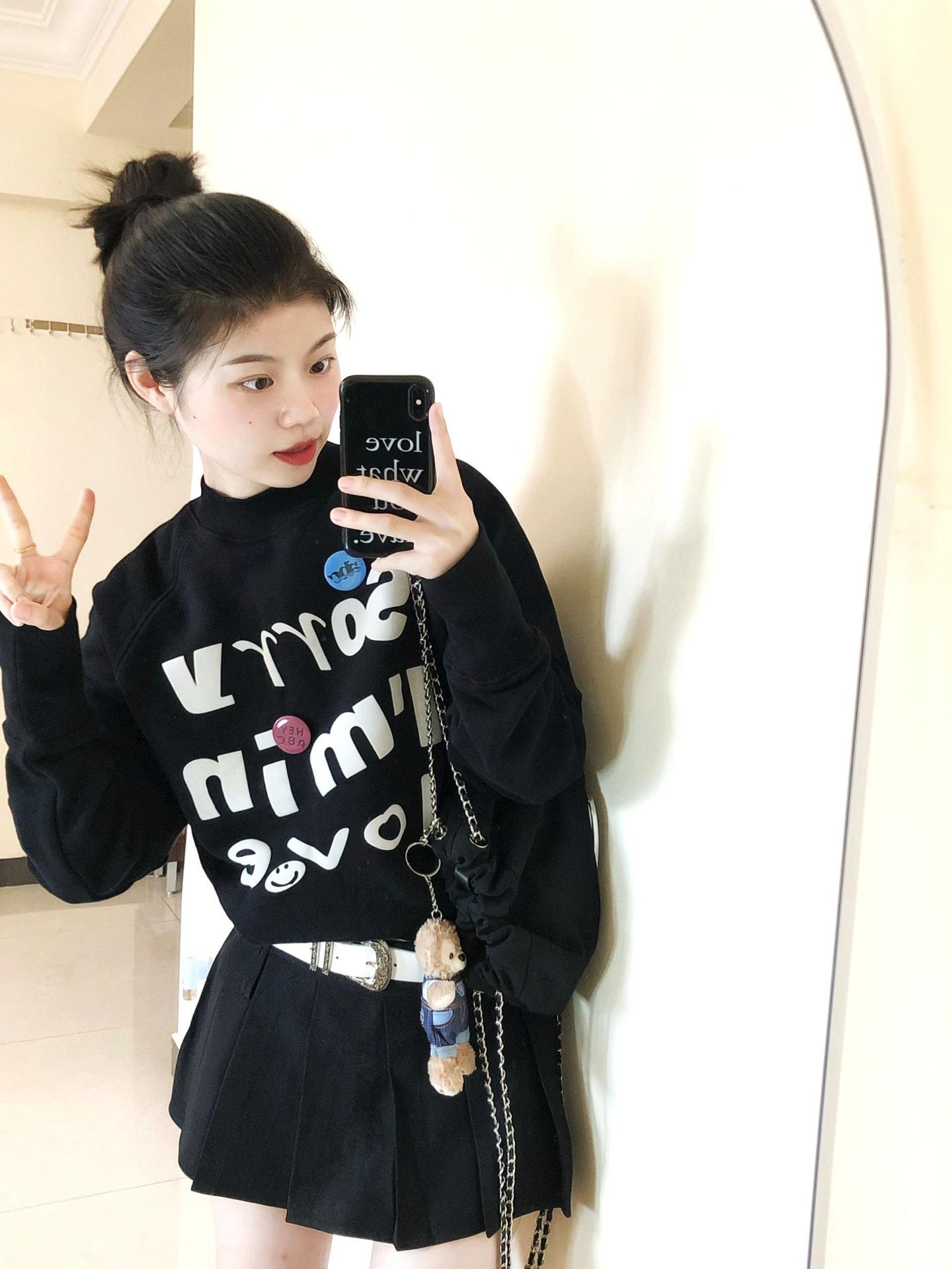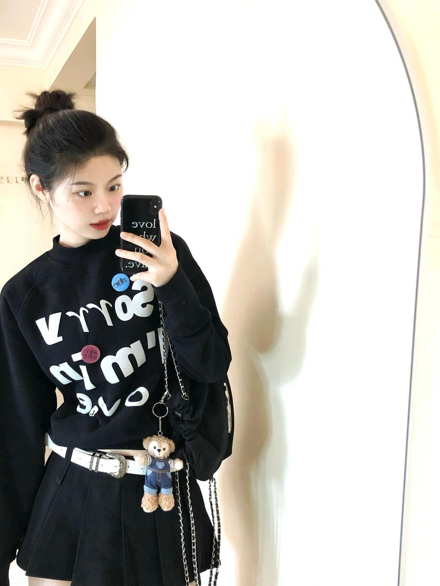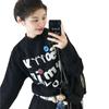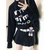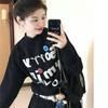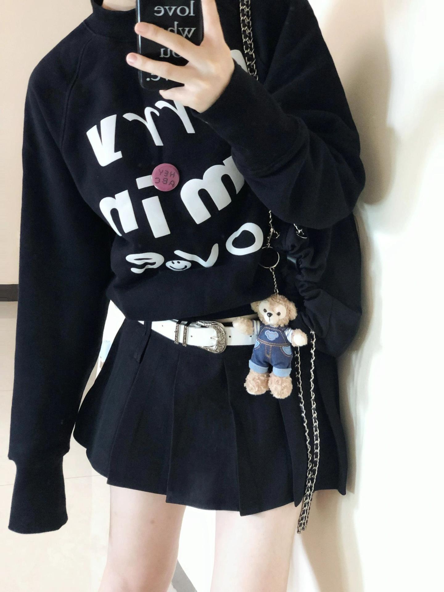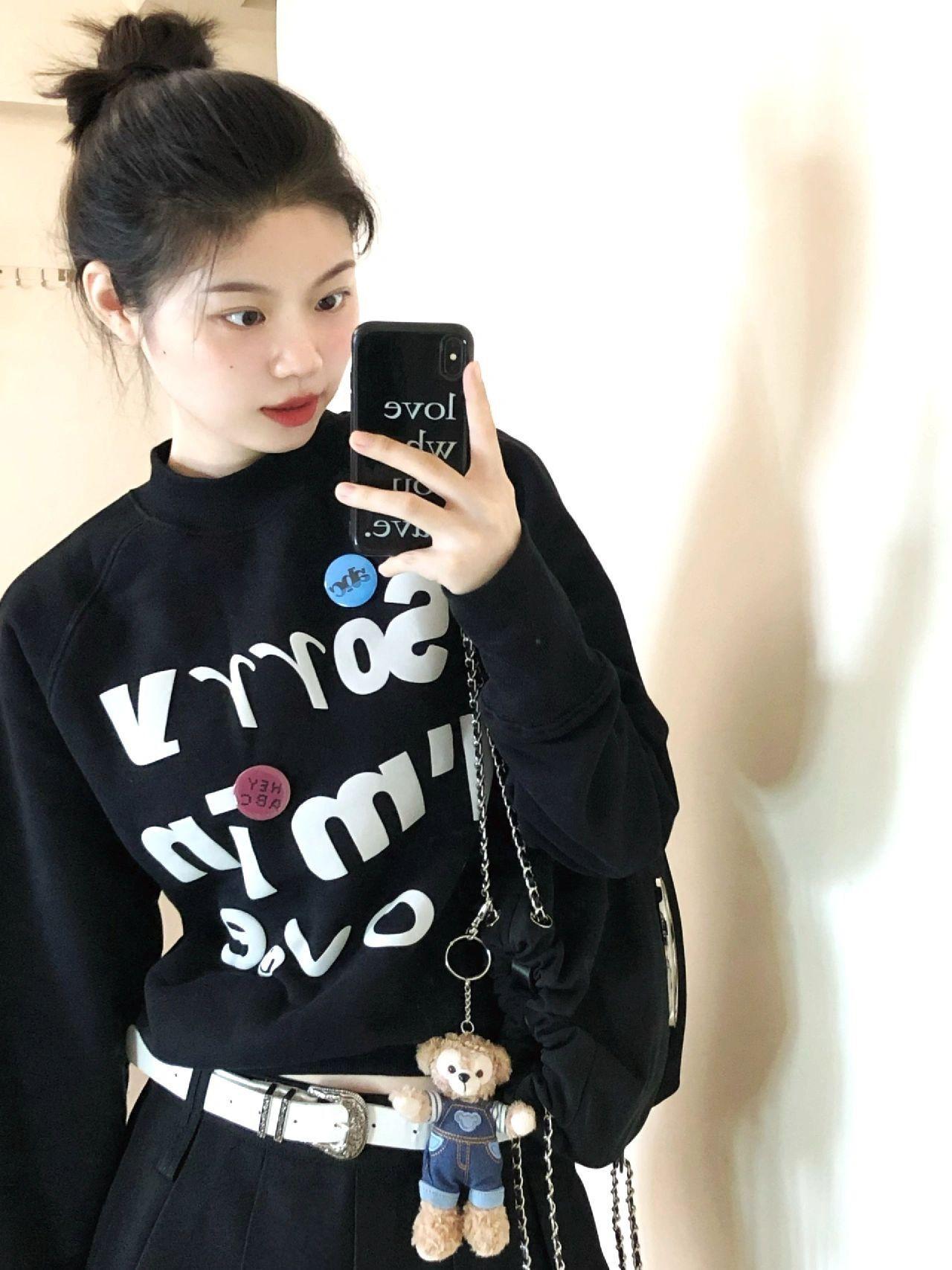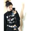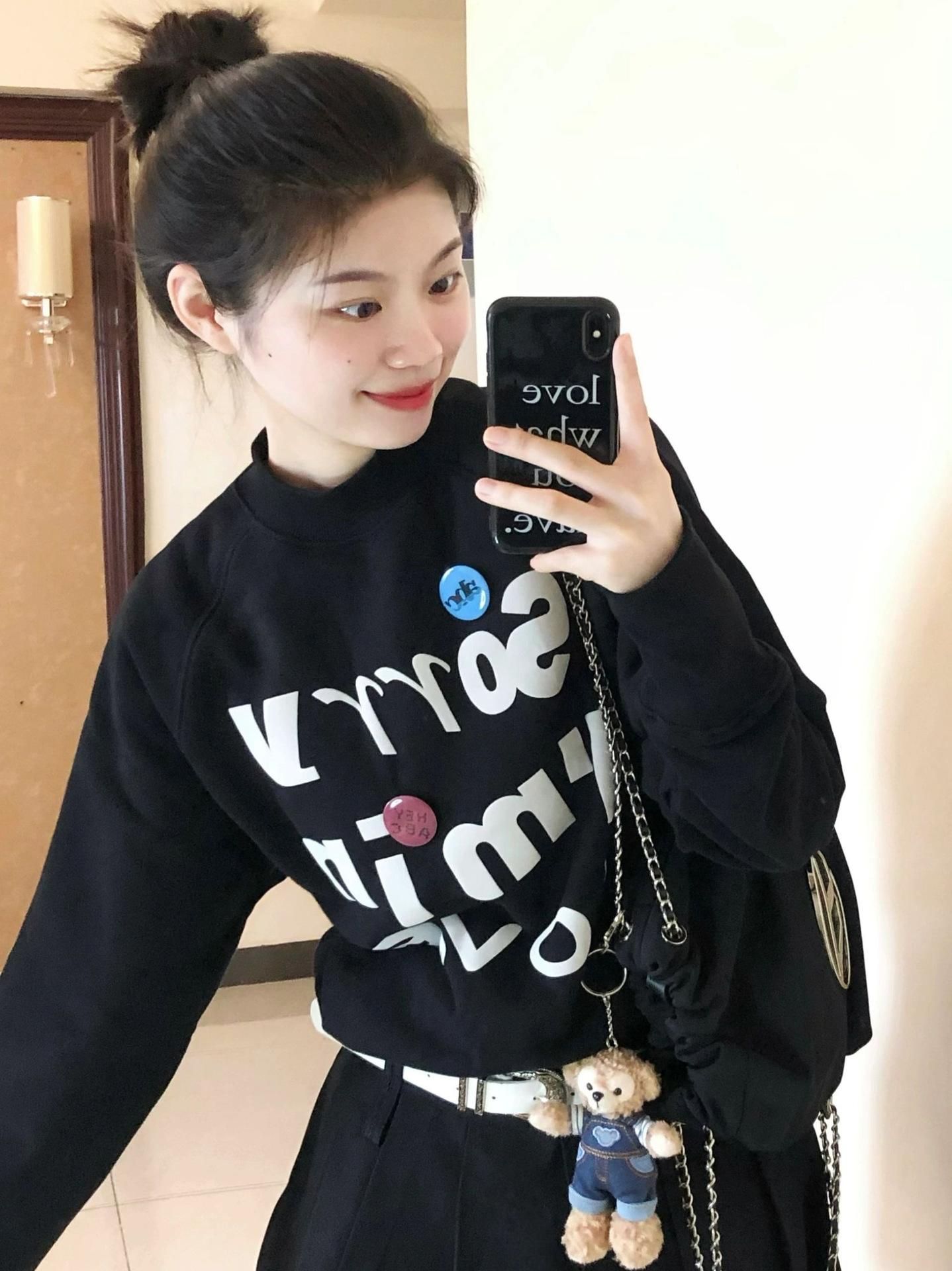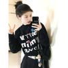 Sudadera con estampado de letras negras estilo retro americano para mujer, otoño e invierno, nueva, holgada, informal, combinable, cuello redondo, manga larga