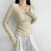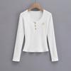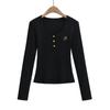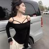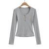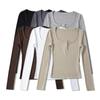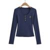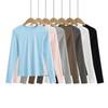 Camiseta de manga larga elástica ajustada para chica, estilo americano, primavera 2024, cuello redondo grande, parte inferior adelgazante
