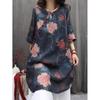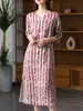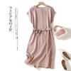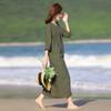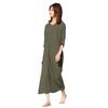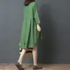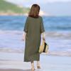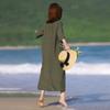 2025 Nuevo Estilo de Verano Literario Suelto Color Puro Algodón y Lino Cuello en V Manga Tres Cuartos Vestido de Mujer Largo Medio 3596 #