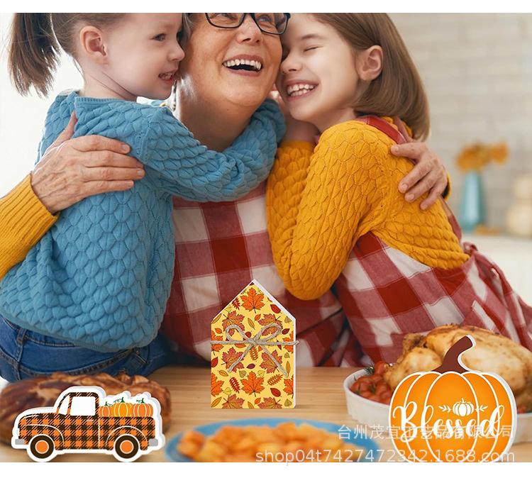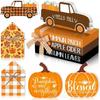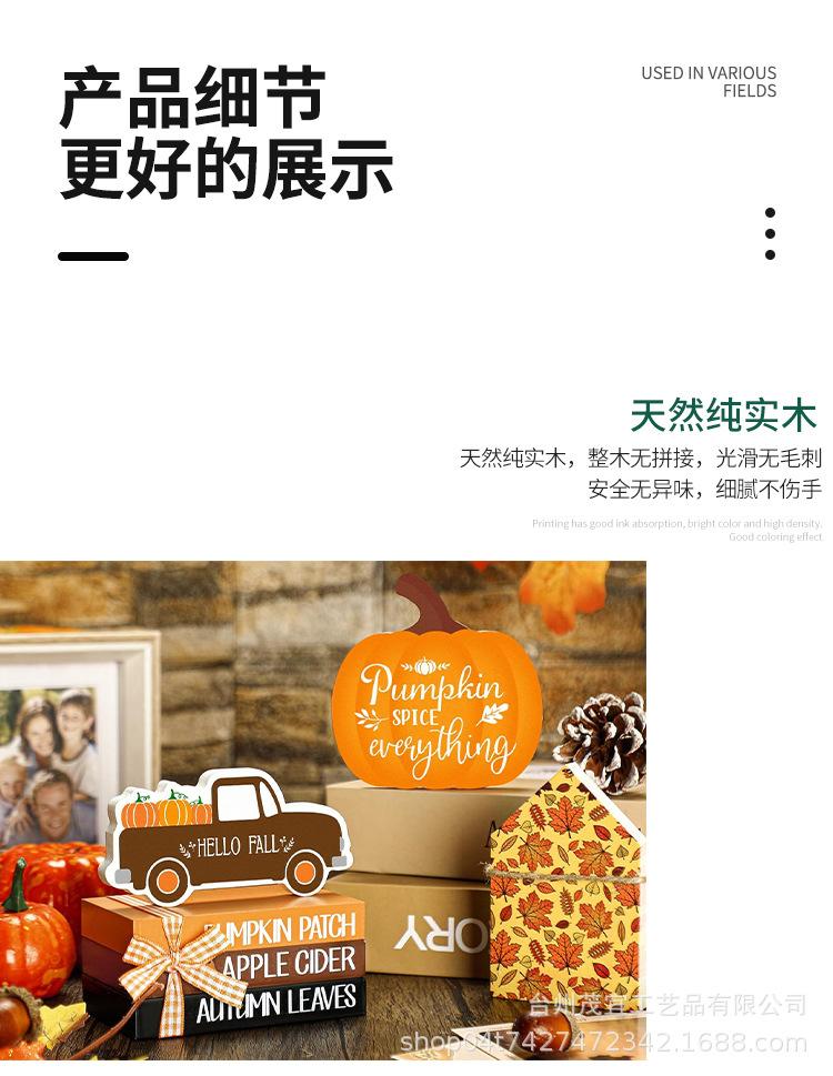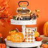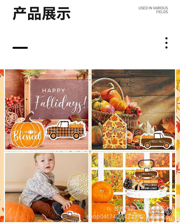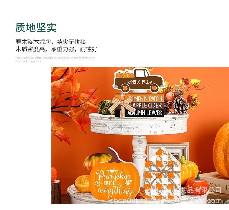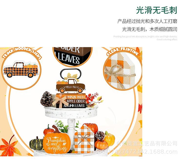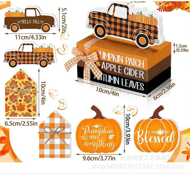 Bandeja de capas de otoño con decoración de Acción de Gracias, paquete de libros de imitación de madera, bandera de calabaza, logotipo de camión