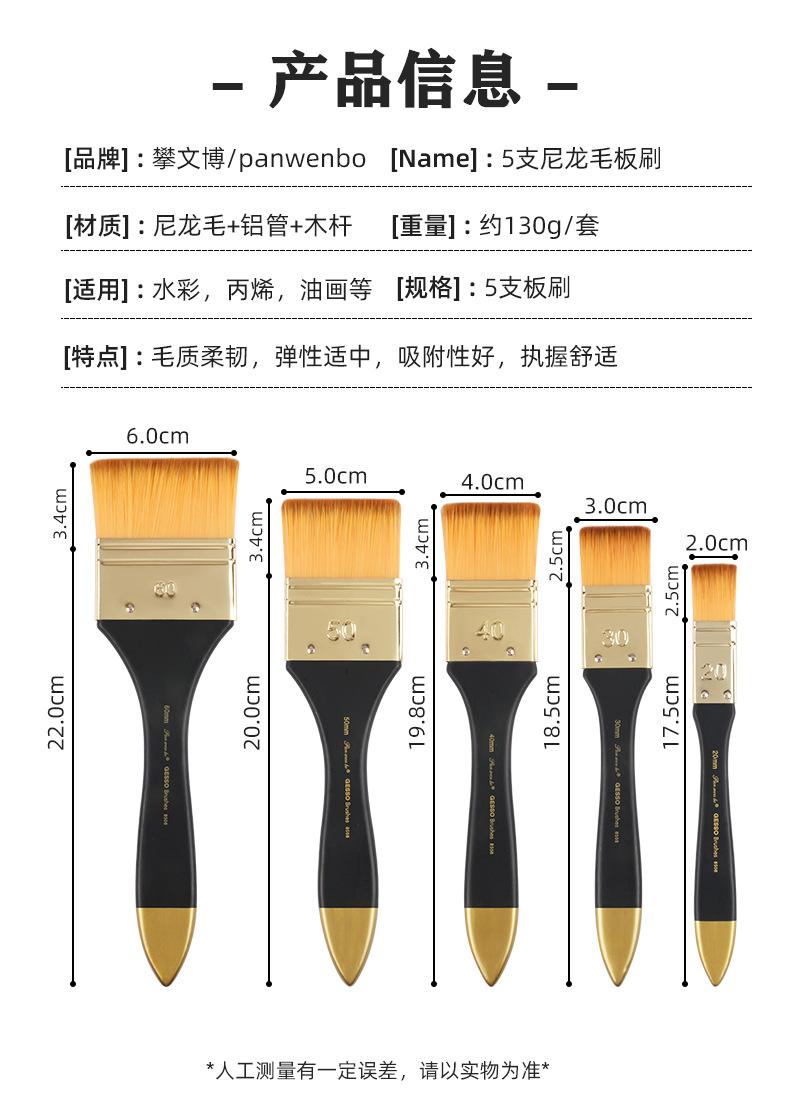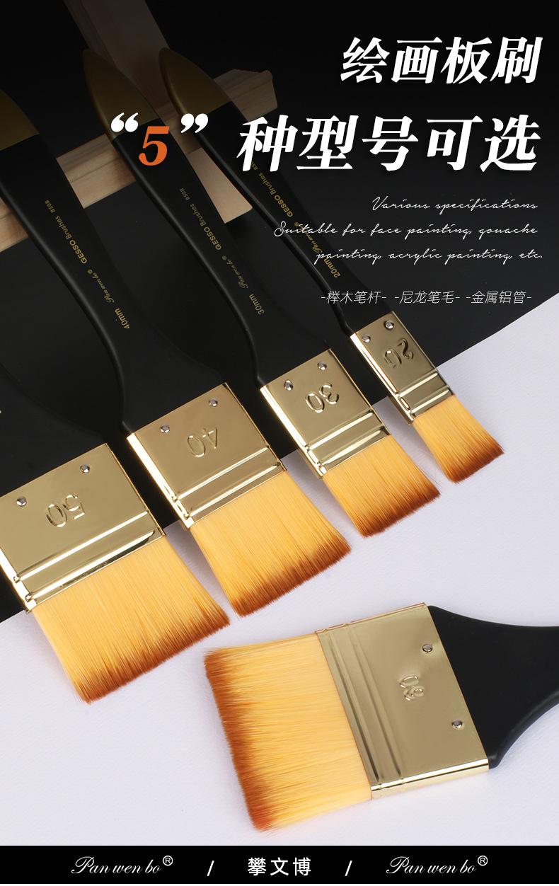 Pincel transfronterizo para pintura al óleo, acrílico, gouache, acuarela, mural, lana de nailon, plano, de abedul