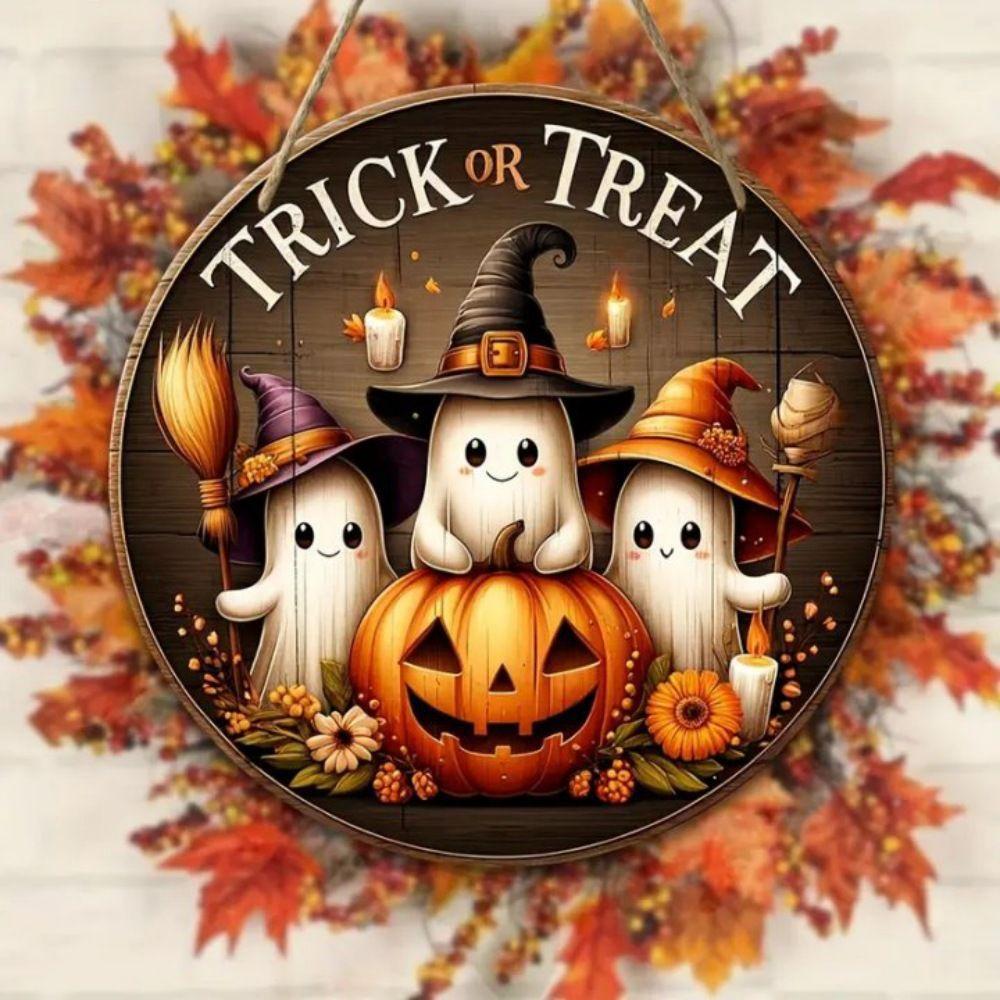 En existencia Artesanía de madera Hogar Bar Restaurante Decoración de pared Fantasma de Halloween Logotipo redondo Listado creativo